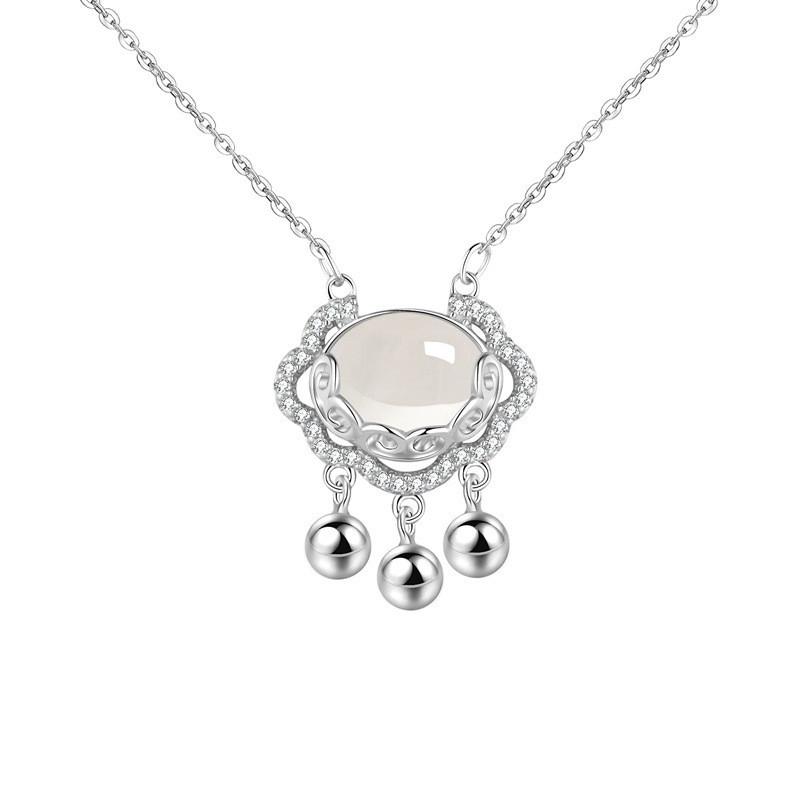 S999纯银如意平安锁项链轻奢小众白玉髓长命锁锁骨链生日礼物女生
