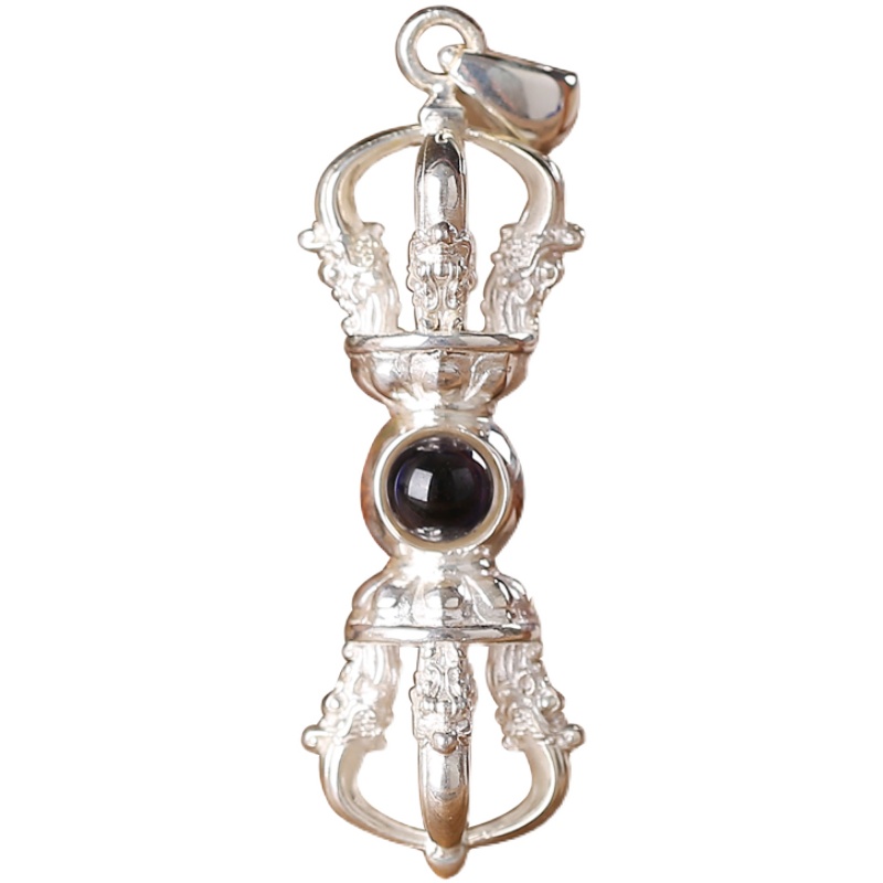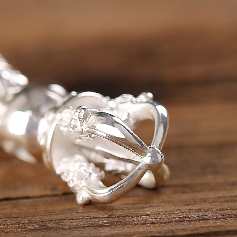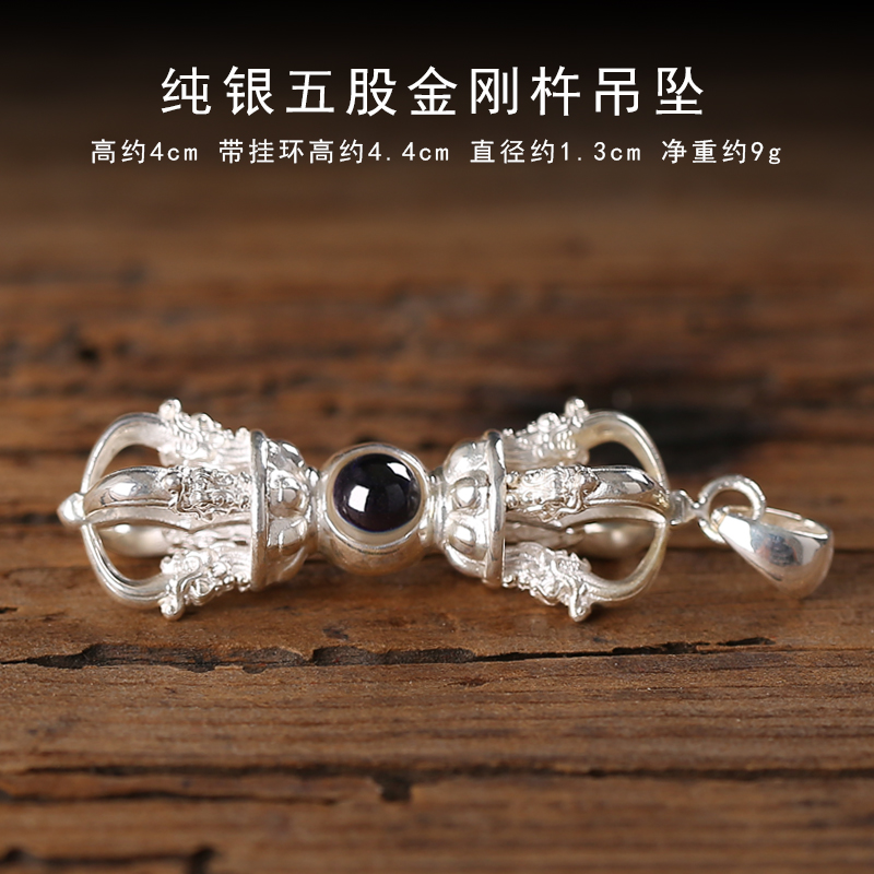 尼泊尔工艺纯银五股金刚杵降魔杵吊坠微缩经文情侣项链男女个挂件