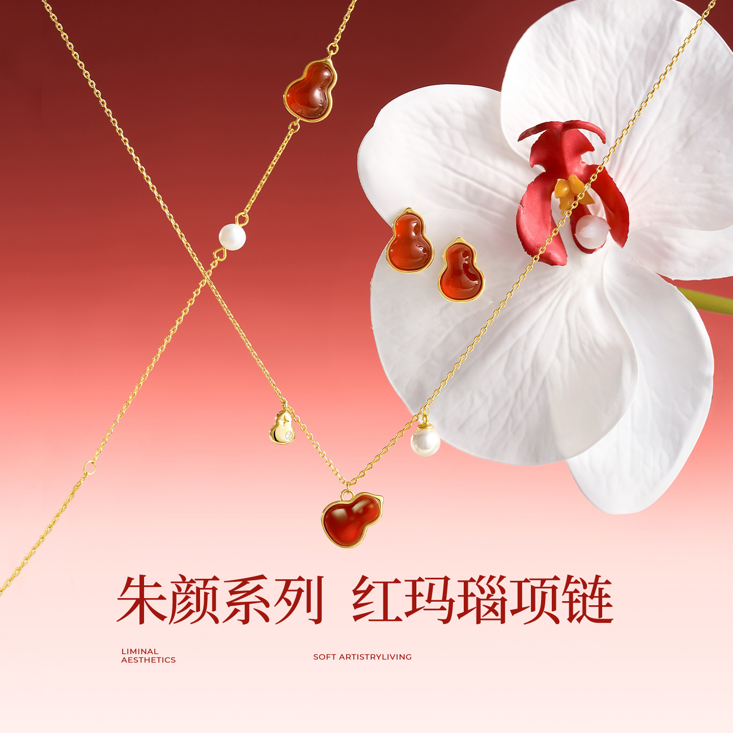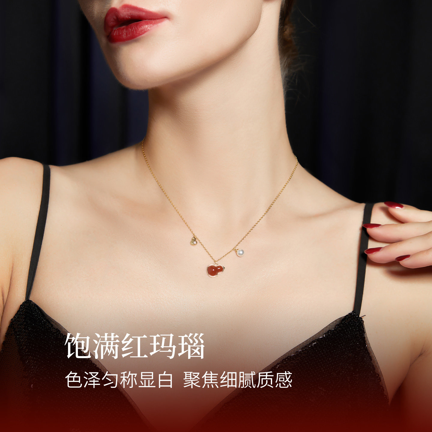 JAY福禄葫芦项链轻奢小众红玛瑙吊坠锁骨链红色本命年新年礼物