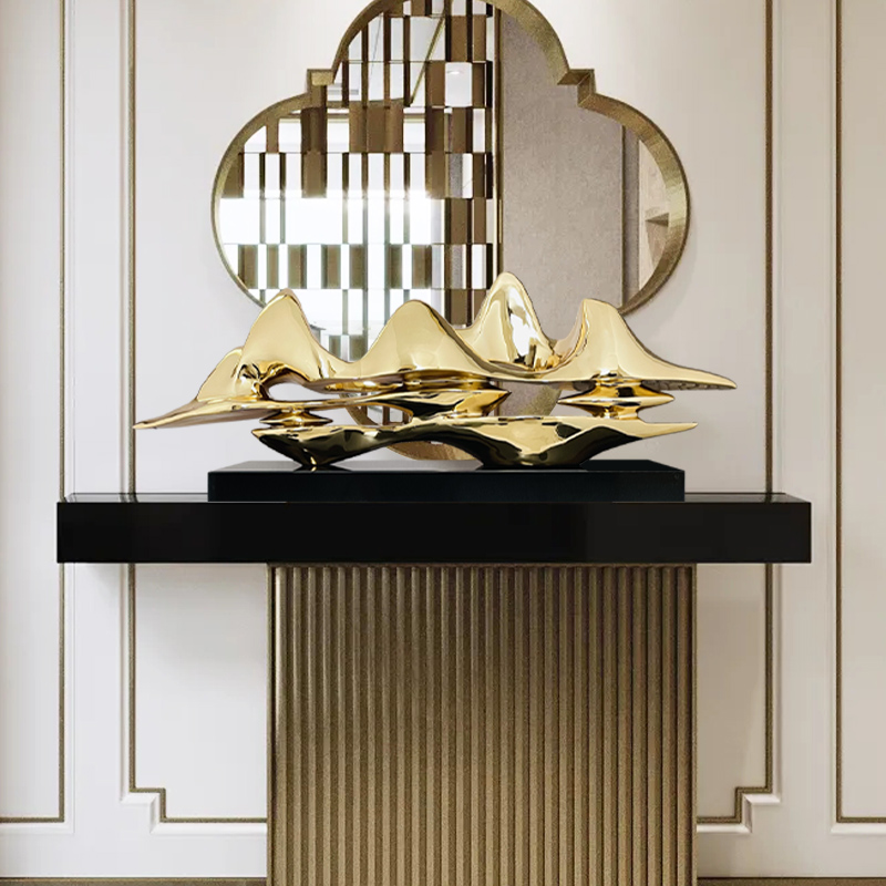 样板房进门玄关摆件客厅入户金山现代轻奢电镀软装饰品艺术品雕塑