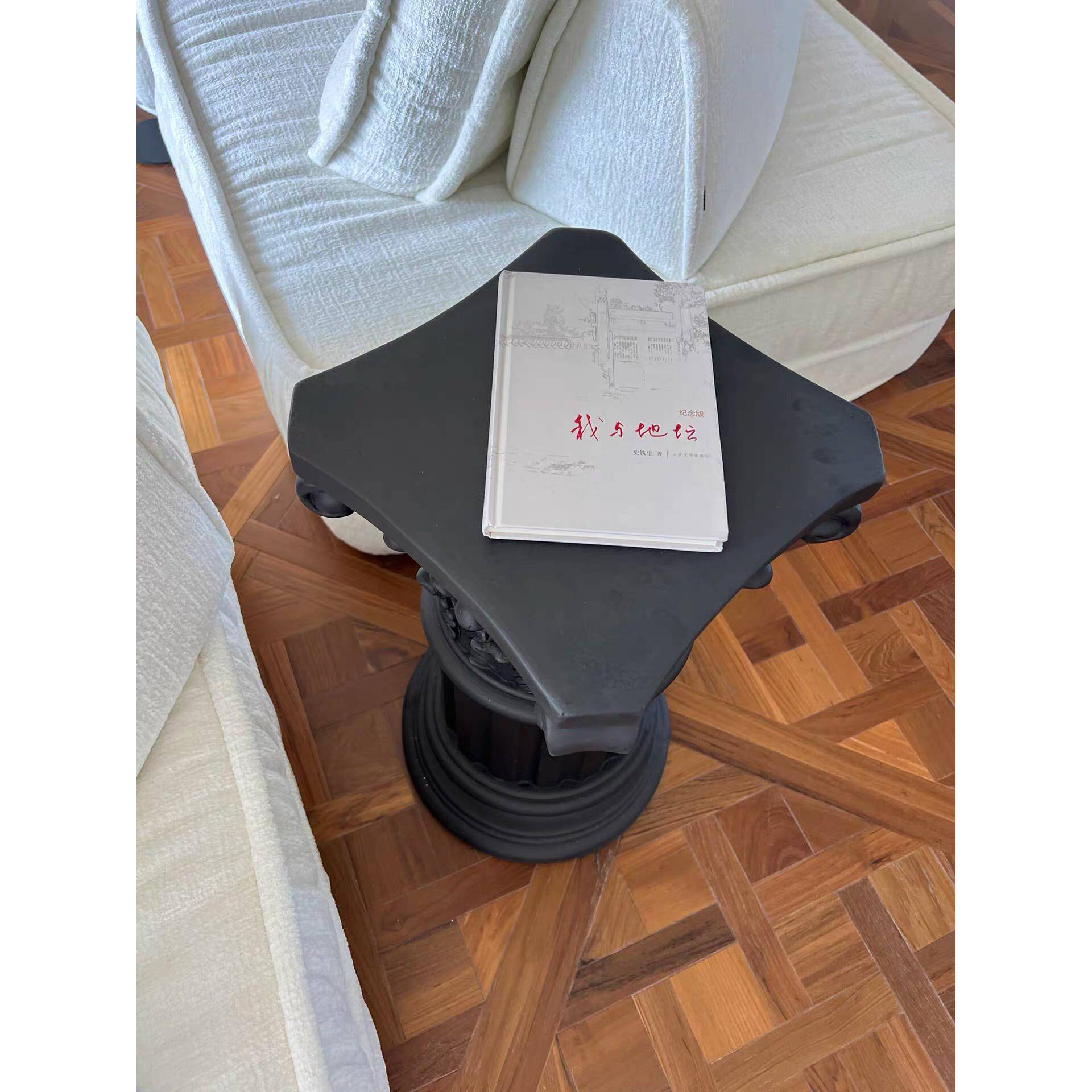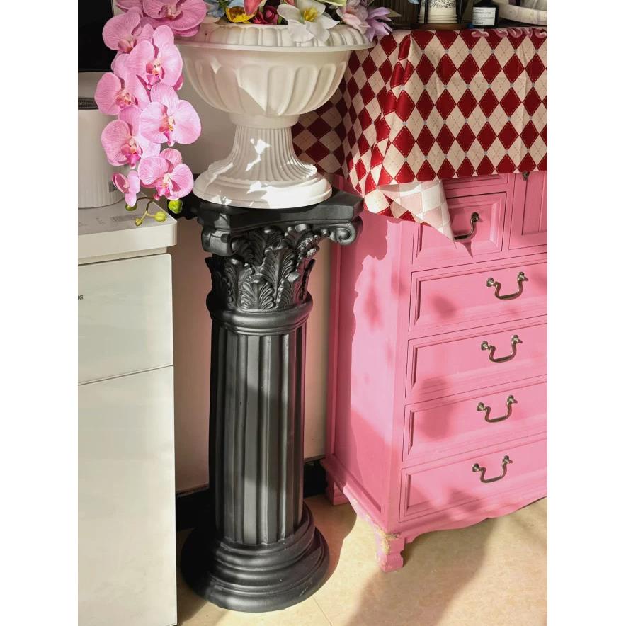 黄莎莎的花园纯黑色质感罗马柱边几室内家居装饰摆件工艺品