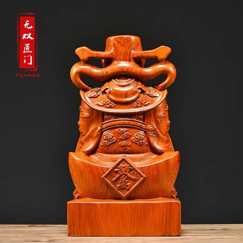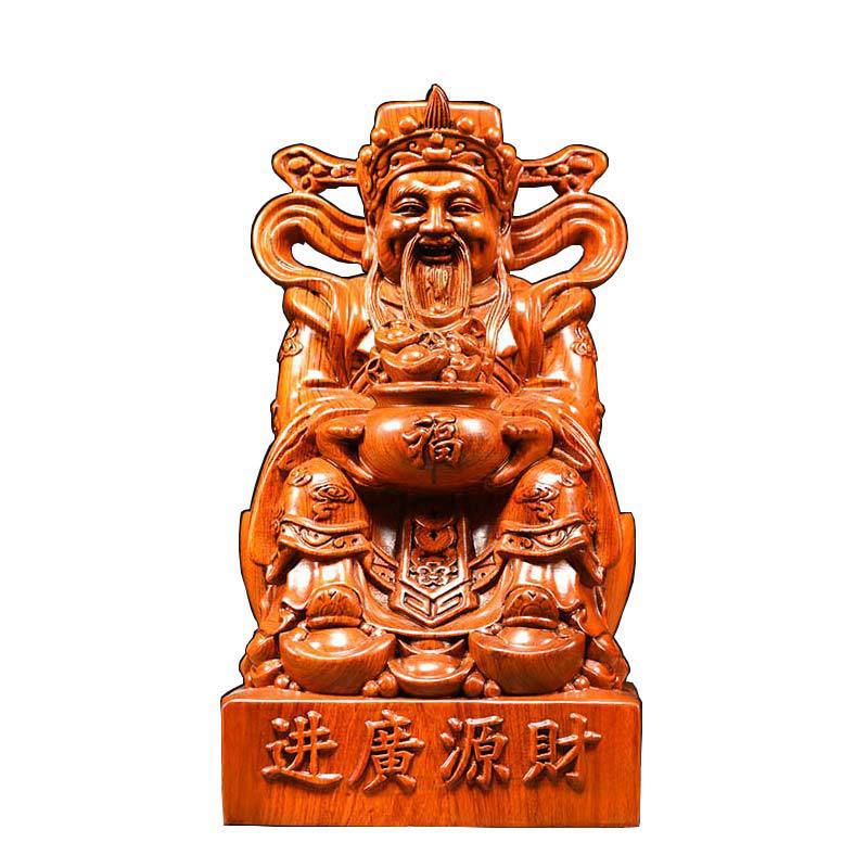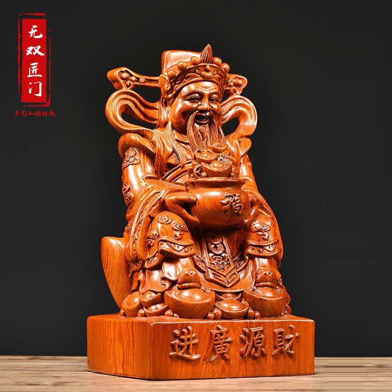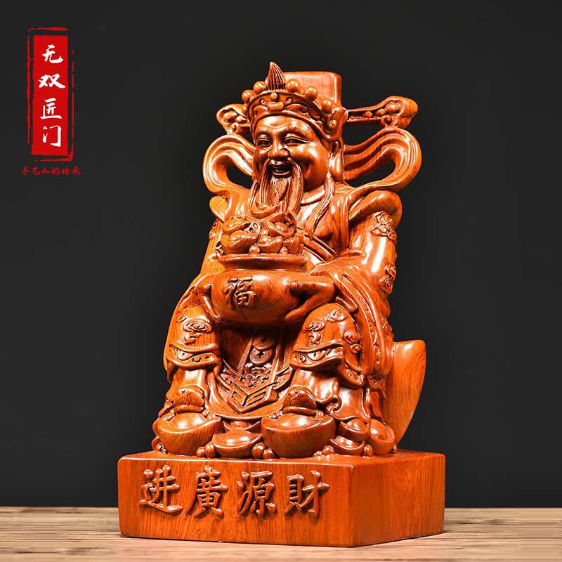 实木雕财神爷摆件黑檀木文财神工艺品家居客厅公司装饰品开业送礼
