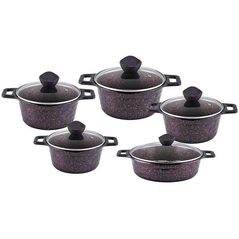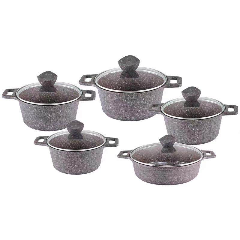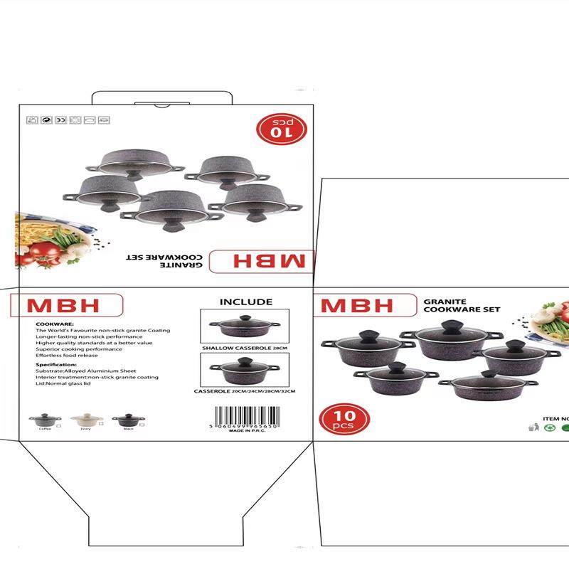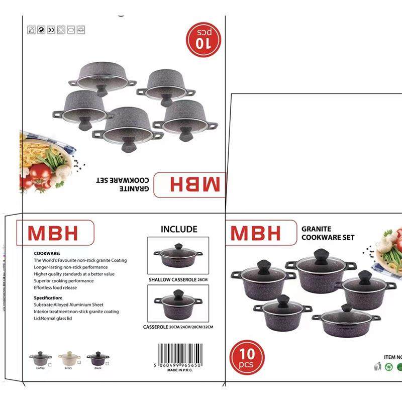 厨房用品MBH10件套不粘锅麦饭石套装铝制家用烹饪锅套件炊具组合