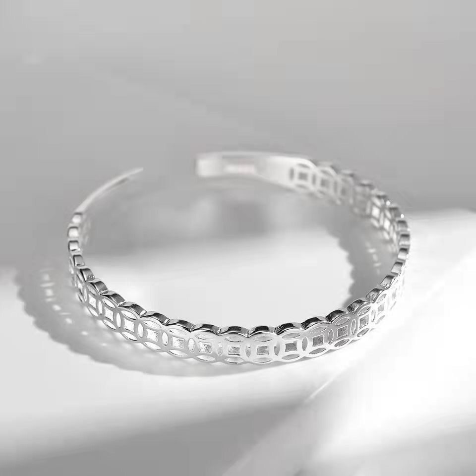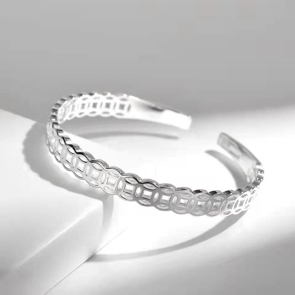 铜钱招财镂空手镯女复古时尚开口手环小众设计镯子可调节民族风