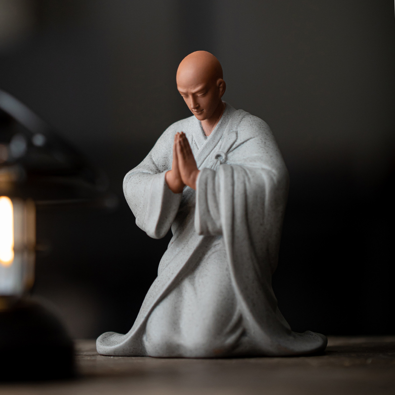 新中式紫砂小和尚摆件禅意陶瓷人物小沙弥客厅桌面装饰品鱼缸造景