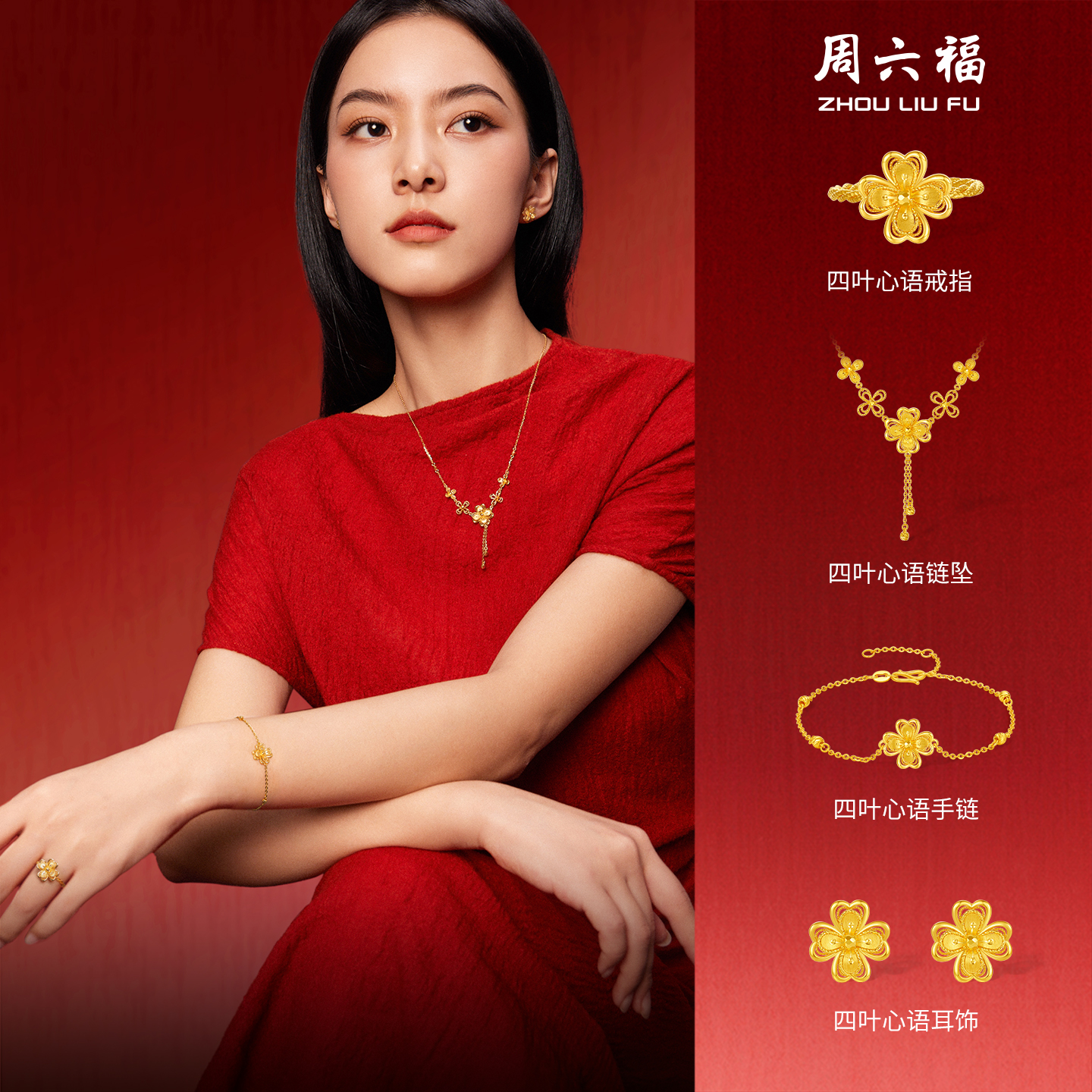 周六福黄金5G计价足金幸卉四叶心语戒指公主嫁期指南系列节日礼物