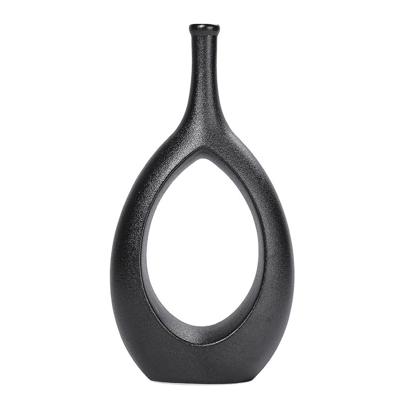 亚马逊款式黑色陶瓷花瓶现代简约餐桌客厅摆件家居家饰干花花器