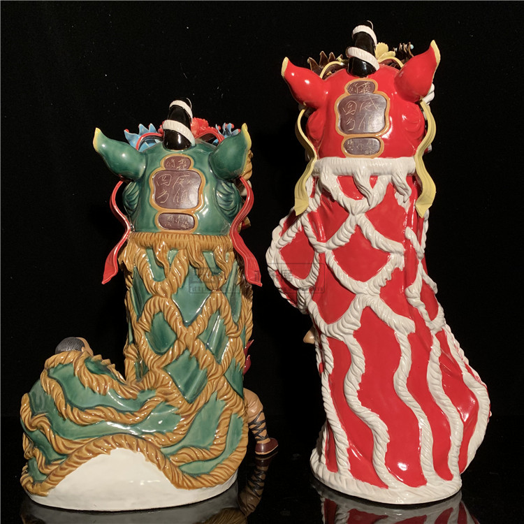 石湾公仔陶瓷舞狮创意公司办公室玄关乔迁开业招财黄飞鸿醒狮摆件