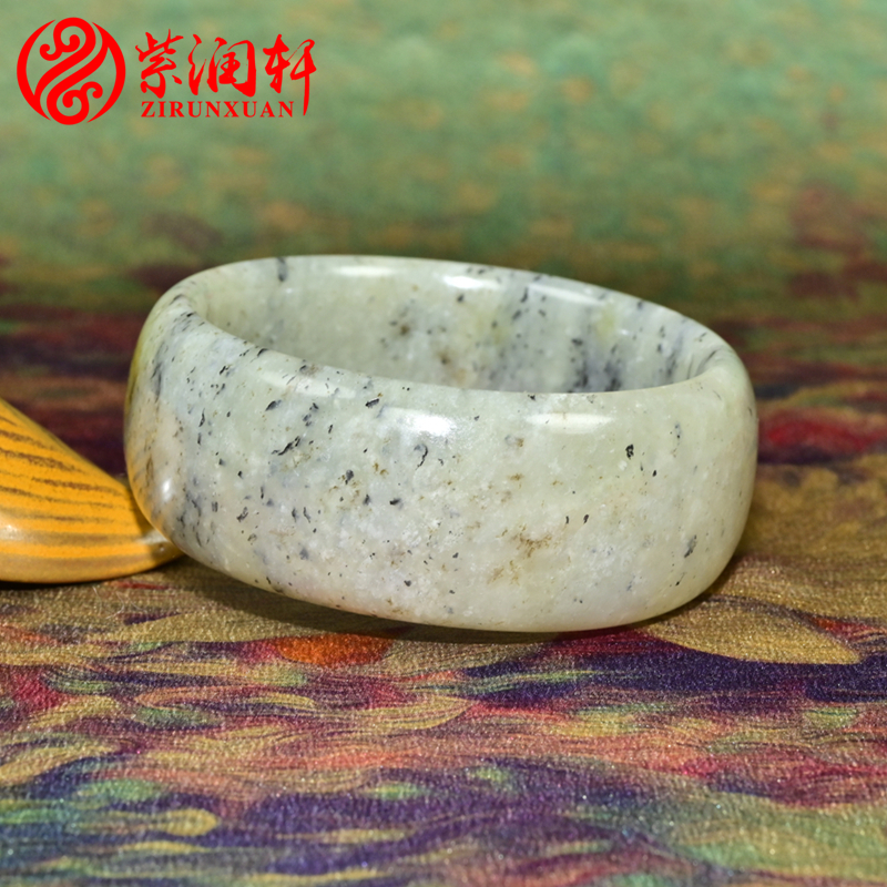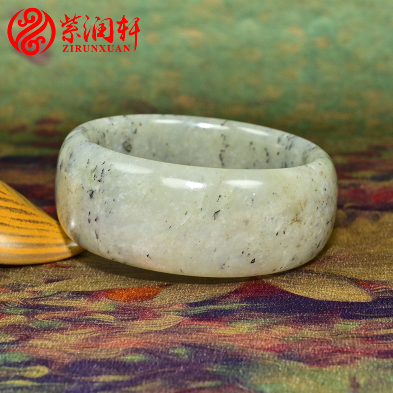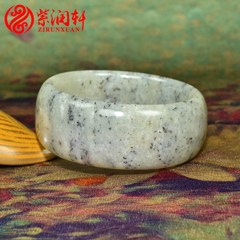 紫润轩新疆和田玉宽版籽料手镯60MM水墨青花洒金皮哑光意境传家级