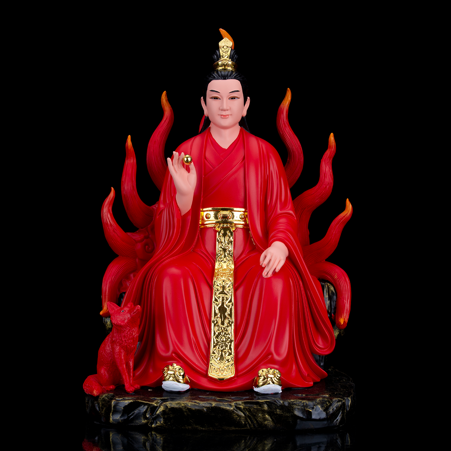 九尾狐像家用供奉九尾狐娘娘神像九姑娘站像九尾灵狐真身摆件红色