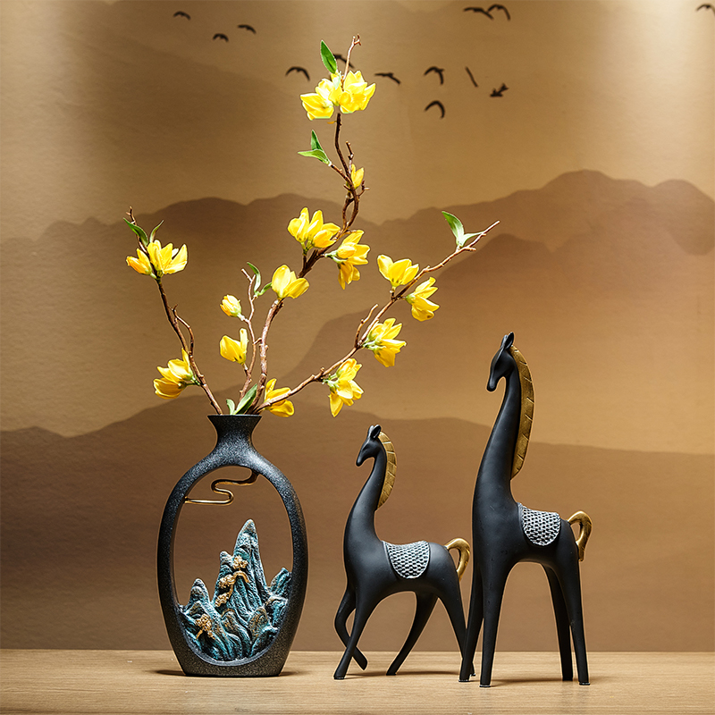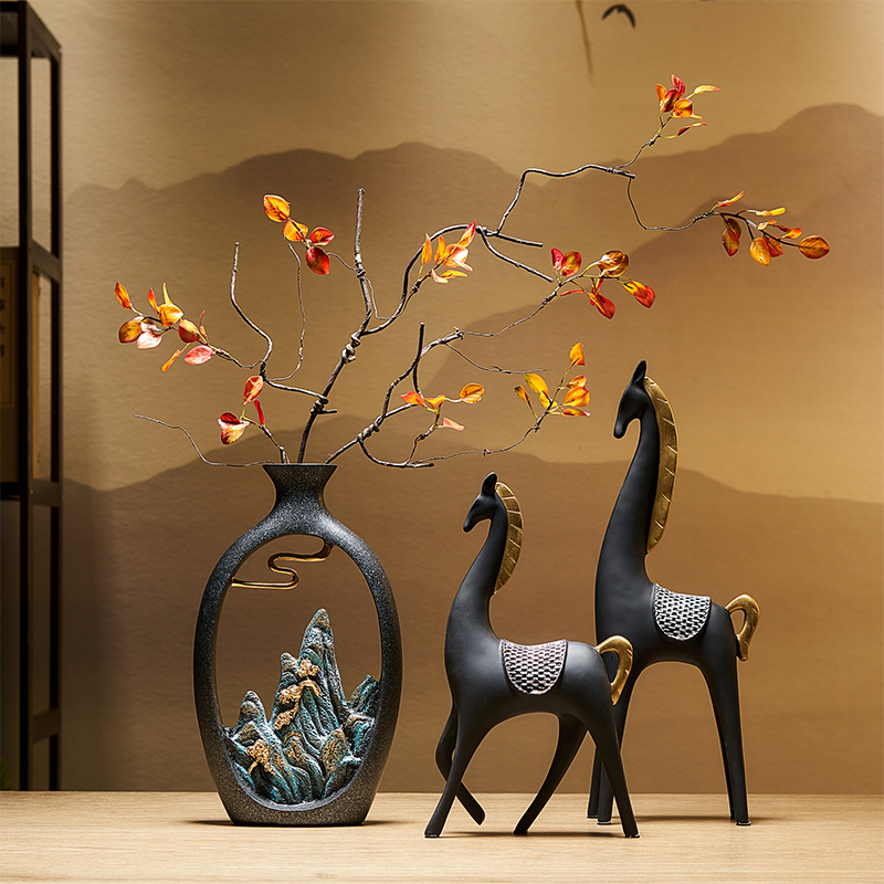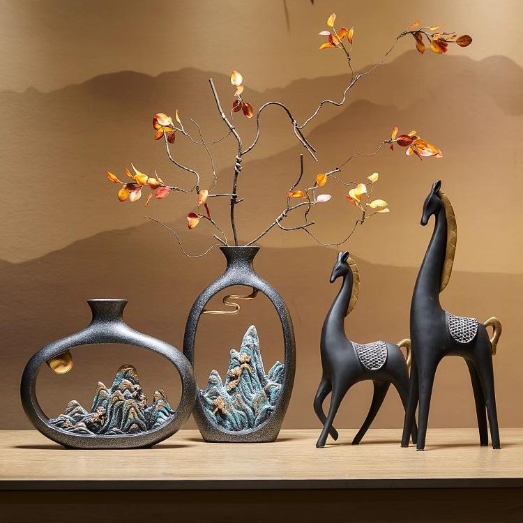 新中式花瓶轻奢高档客厅桌面插花餐桌装饰品办公室博古架摆件高级