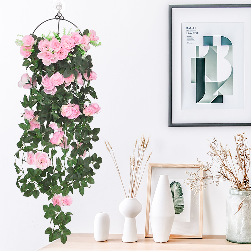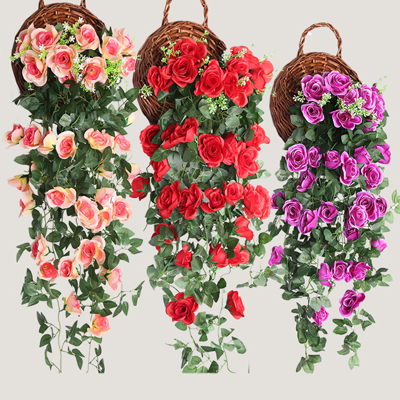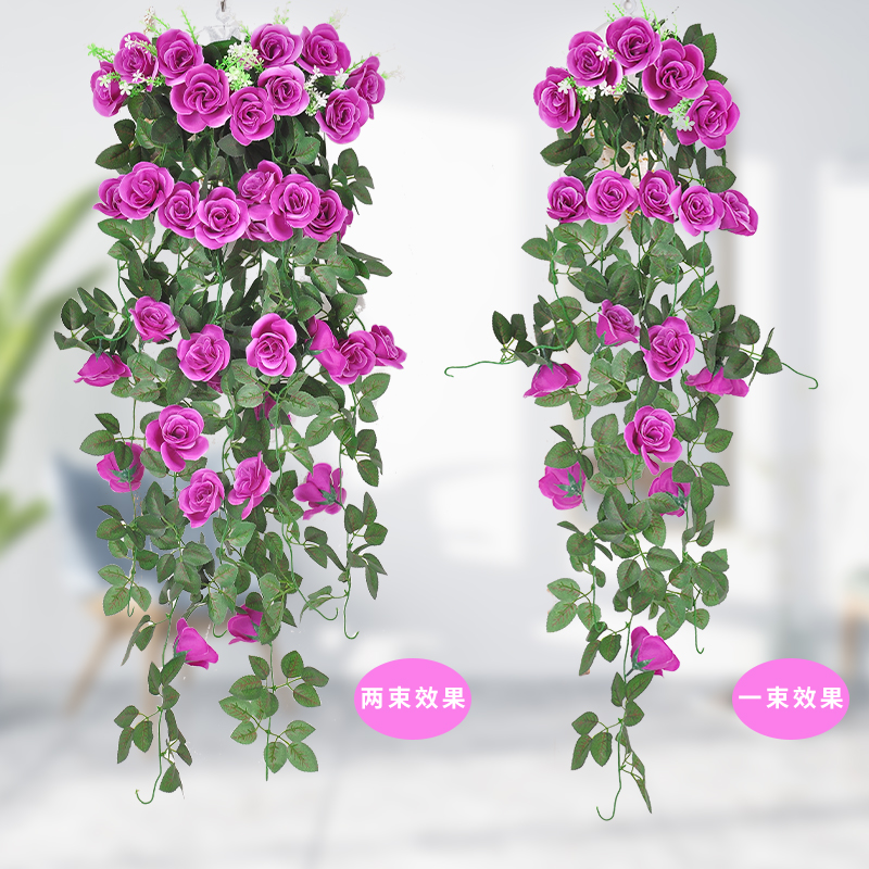 壁挂花仿真玫瑰花假花藤条室内客厅墙面装饰塑料吊兰吊篮假花植物
