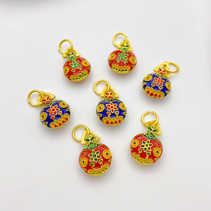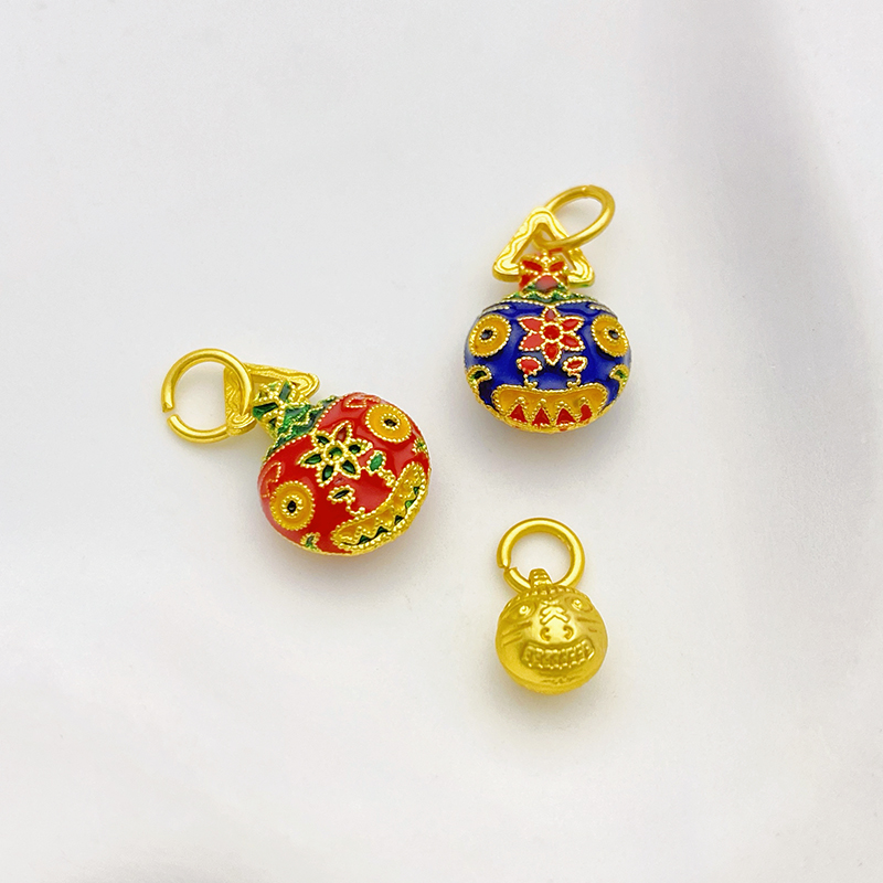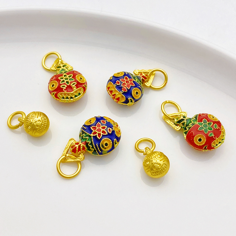 古法沙金保色吞金兽一家吊坠挂件diy烧蓝珐琅手链项链首饰品材料