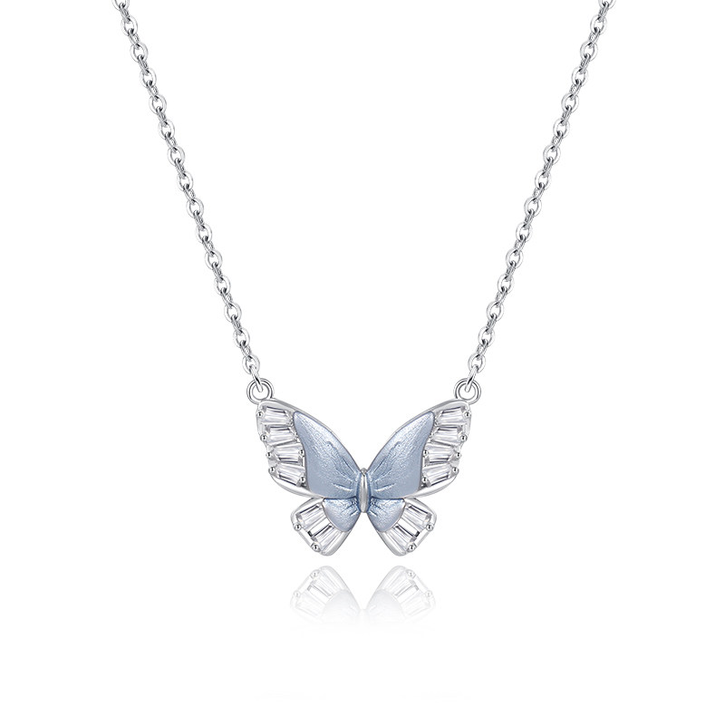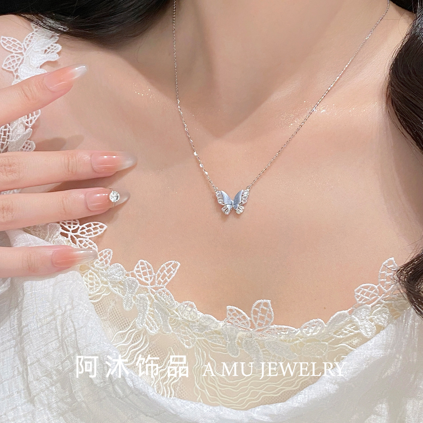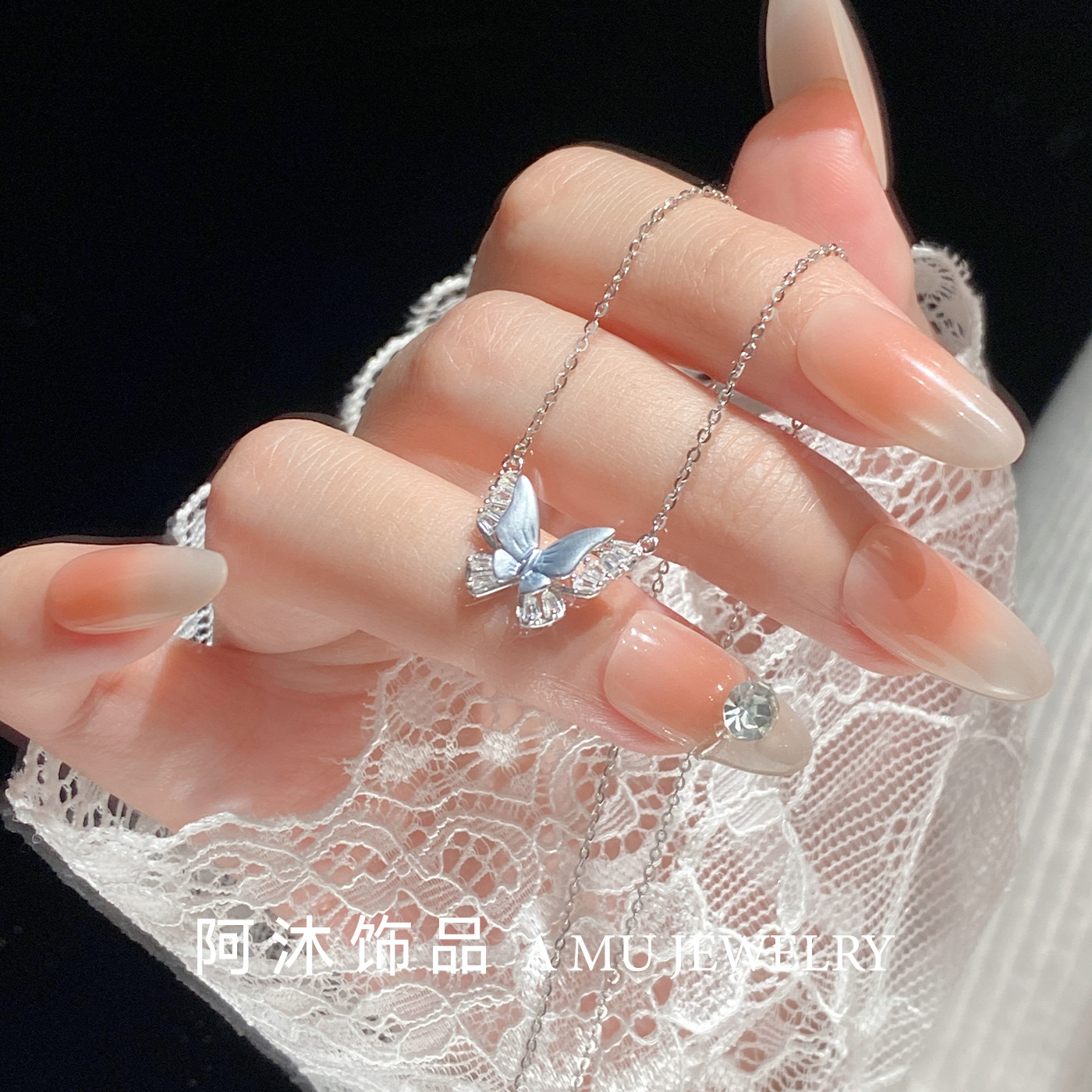 阿沐饰品纯银2025新款珐琅蝴蝶项链女轻奢小众设计送闺蜜生日礼物