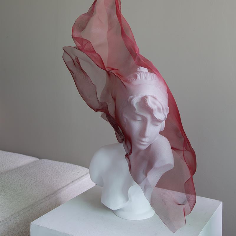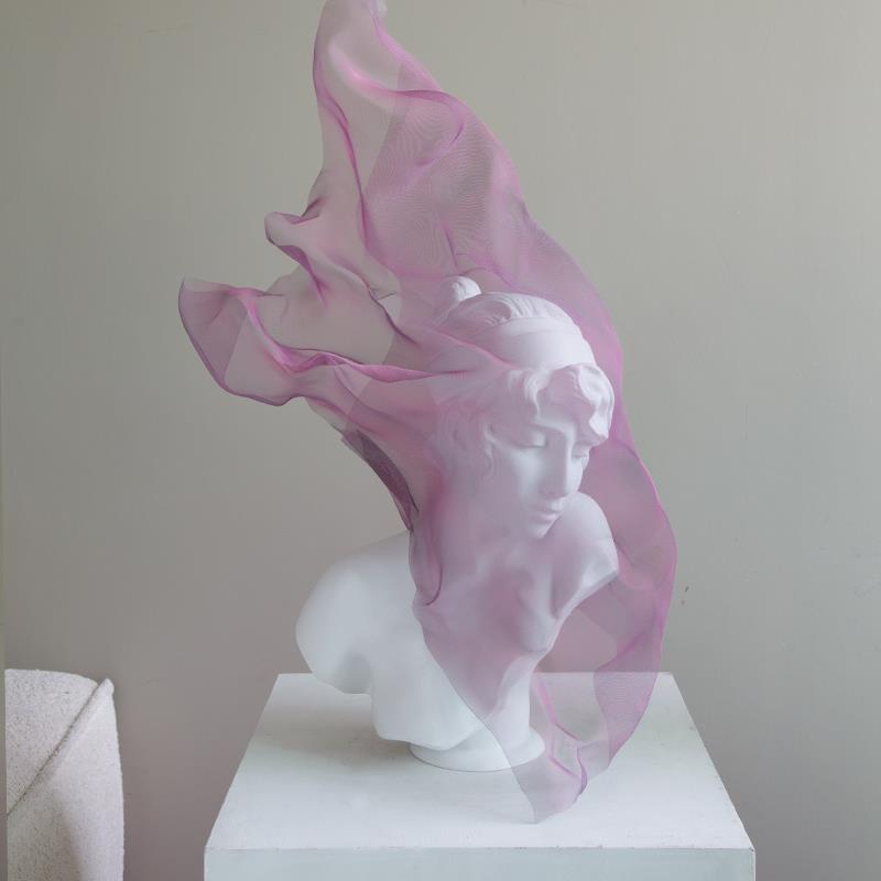 蓝色金属面纱女孩白色雕塑人物雕像客厅艺术摆件高级家居软装饰品