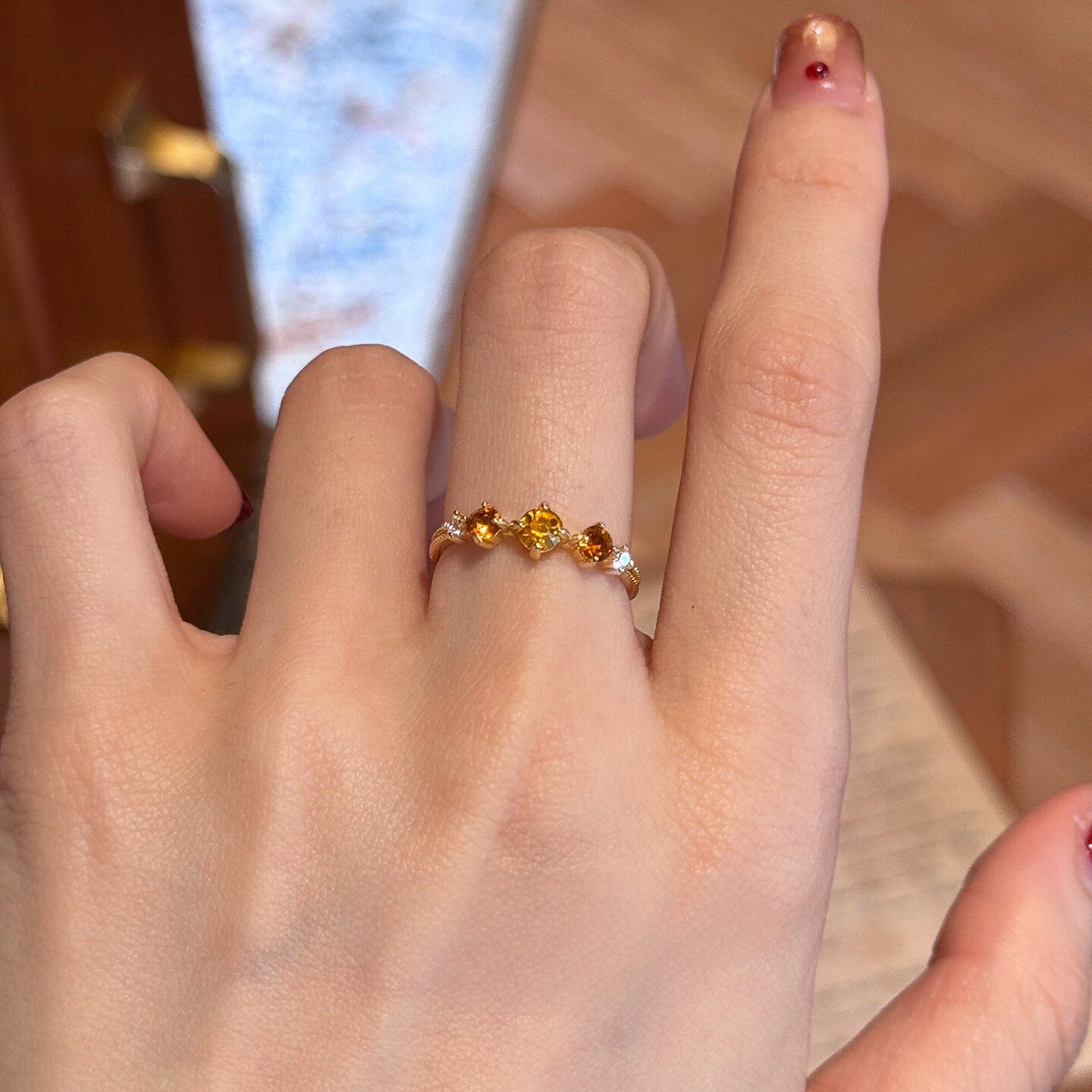 幻日!橘橙色仿钻戒指女小众设计轻奢高级感复古气质开口食指戒指