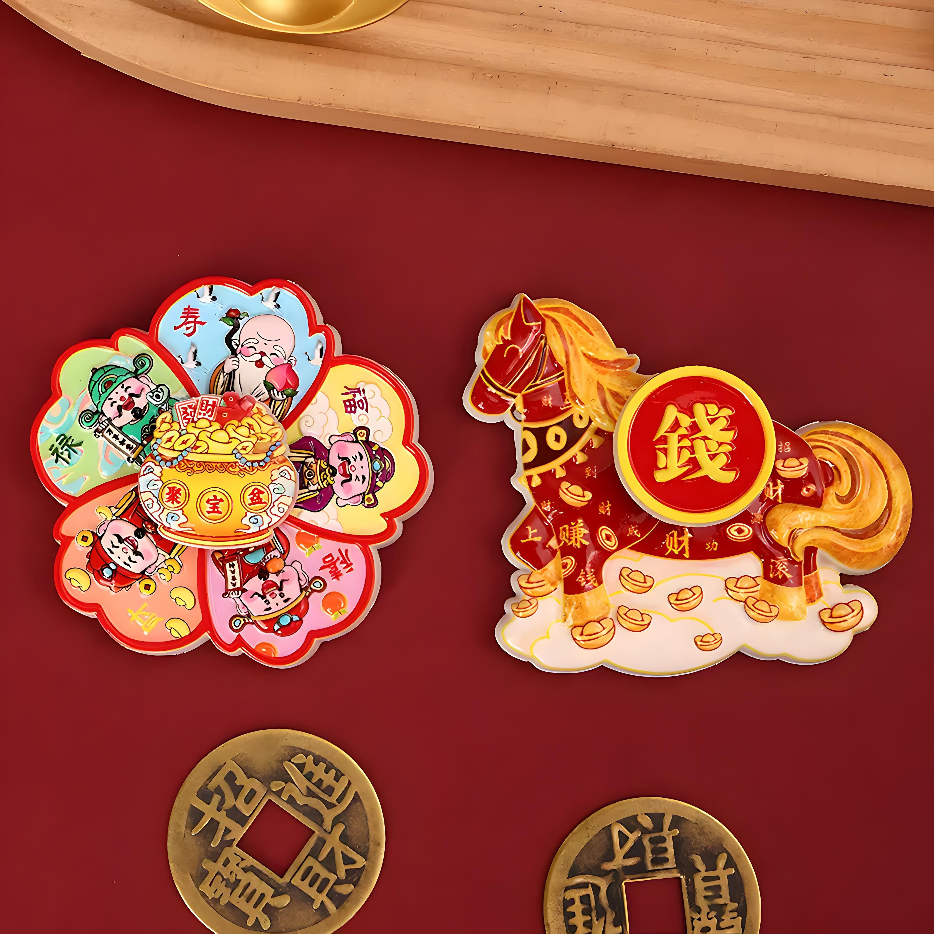 2025新款马上有钱磁吸旋转冰箱贴卡通冰箱摆件招财纳福树脂装饰贴