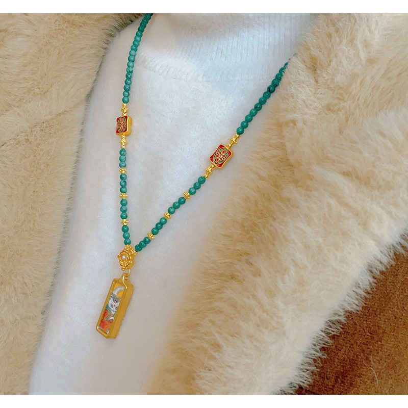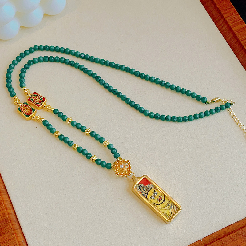 新款民族风配唐卡链条项链仿绿松石黄财神吊坠项链多巴胺配饰品女