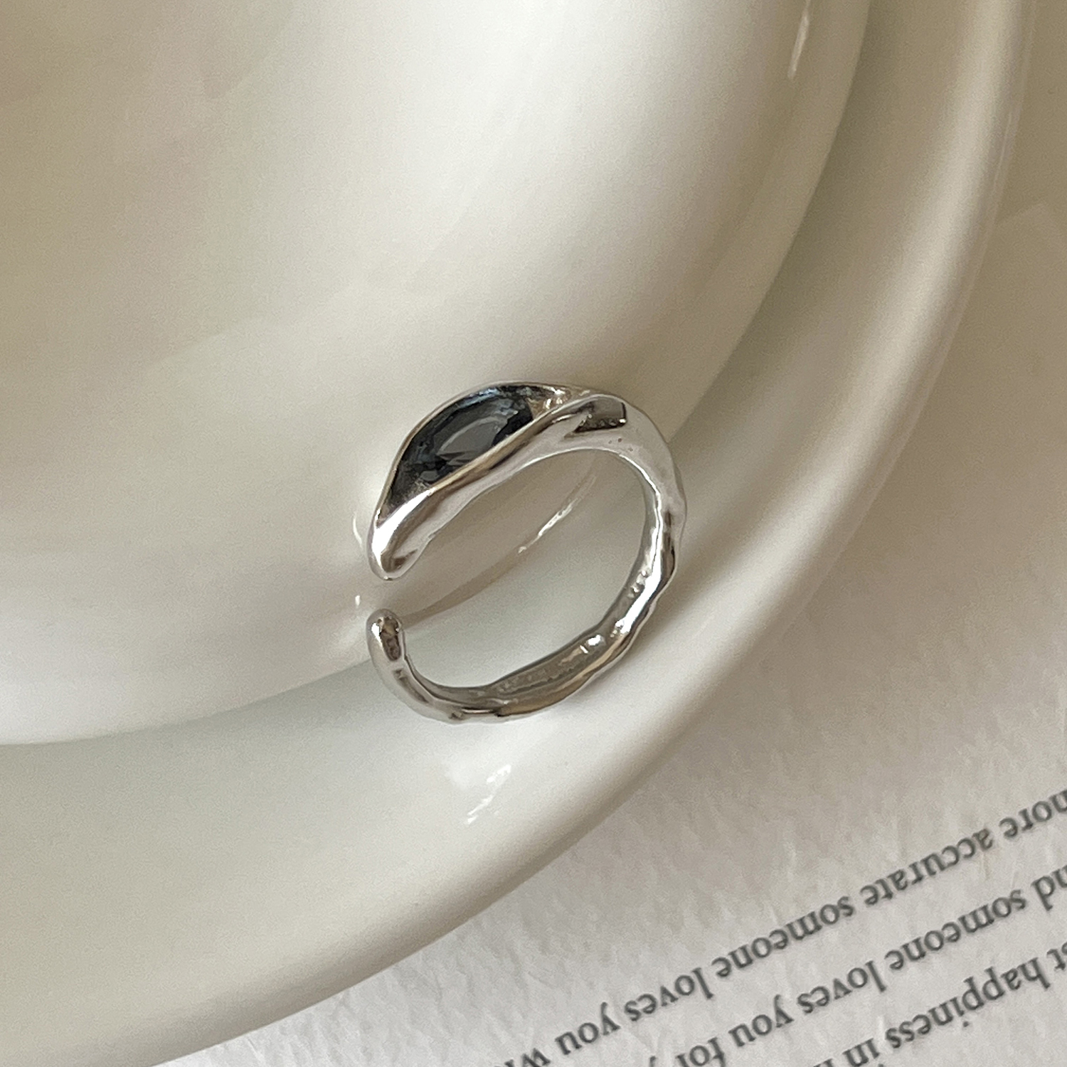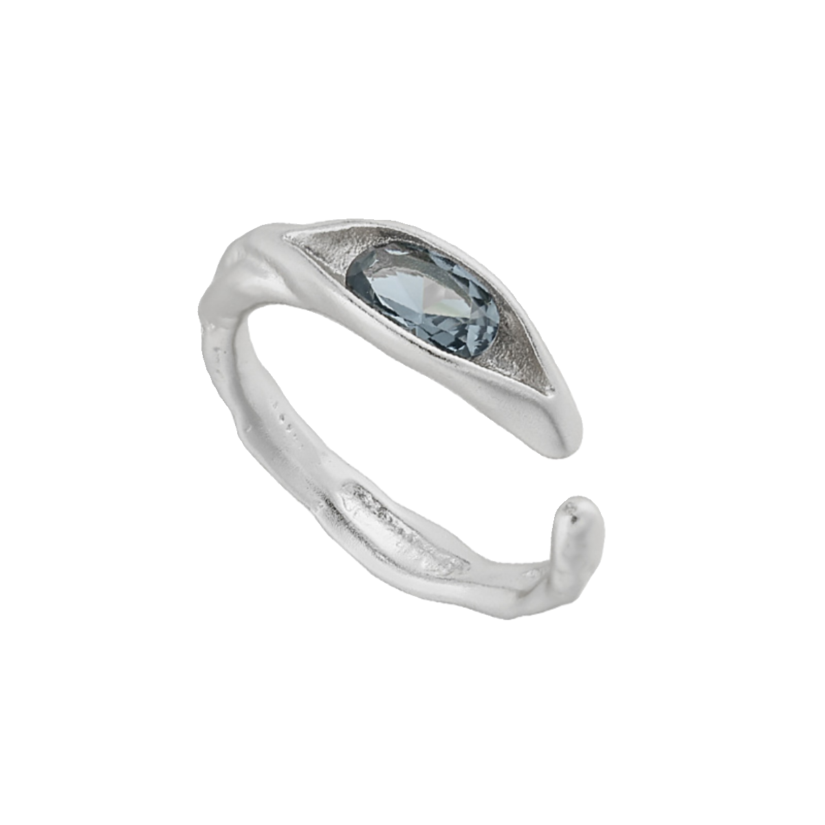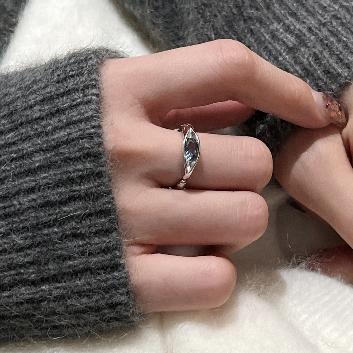 暗黑风S925纯银女款戒指设计小众几何不规则镶嵌蓝色锆石开口戒指