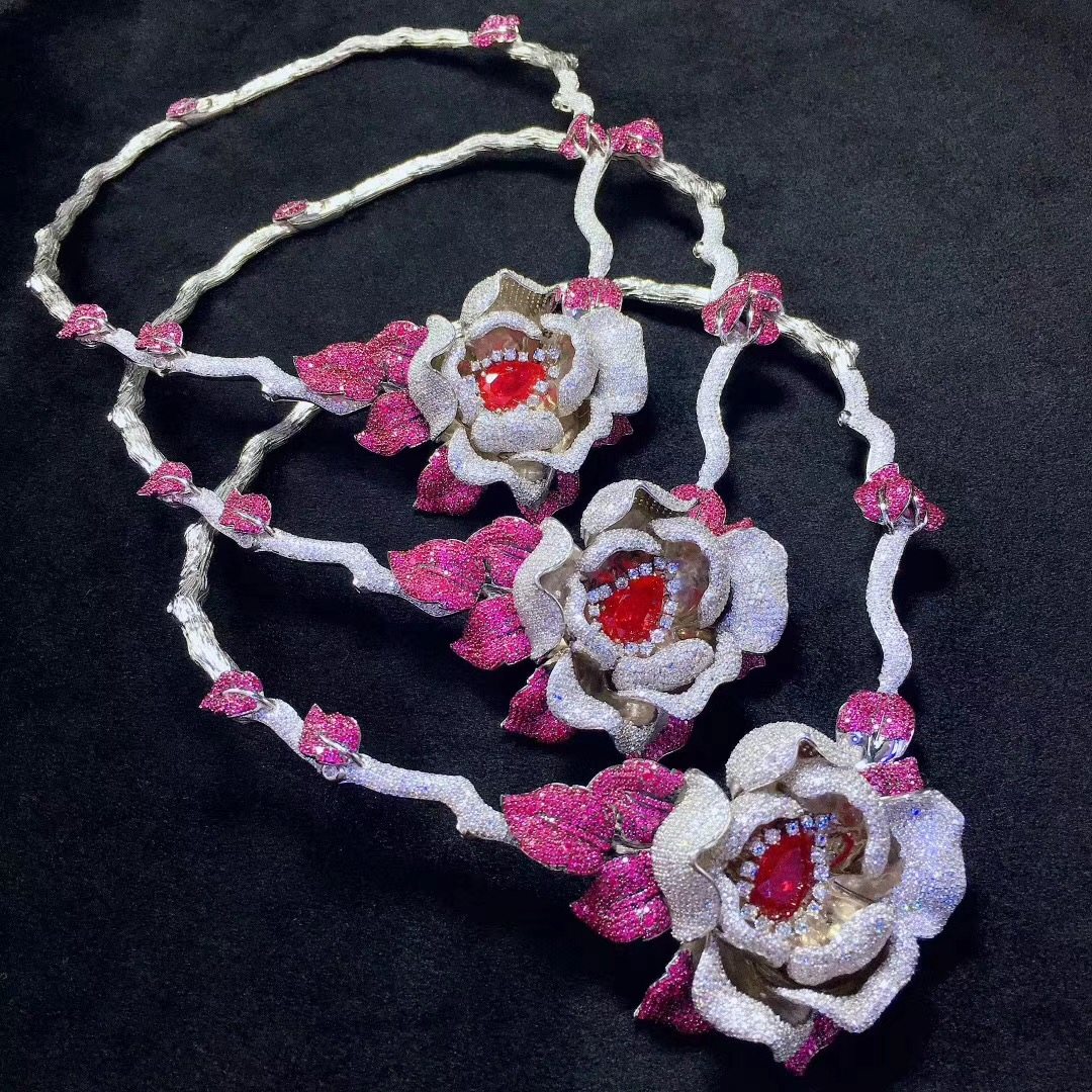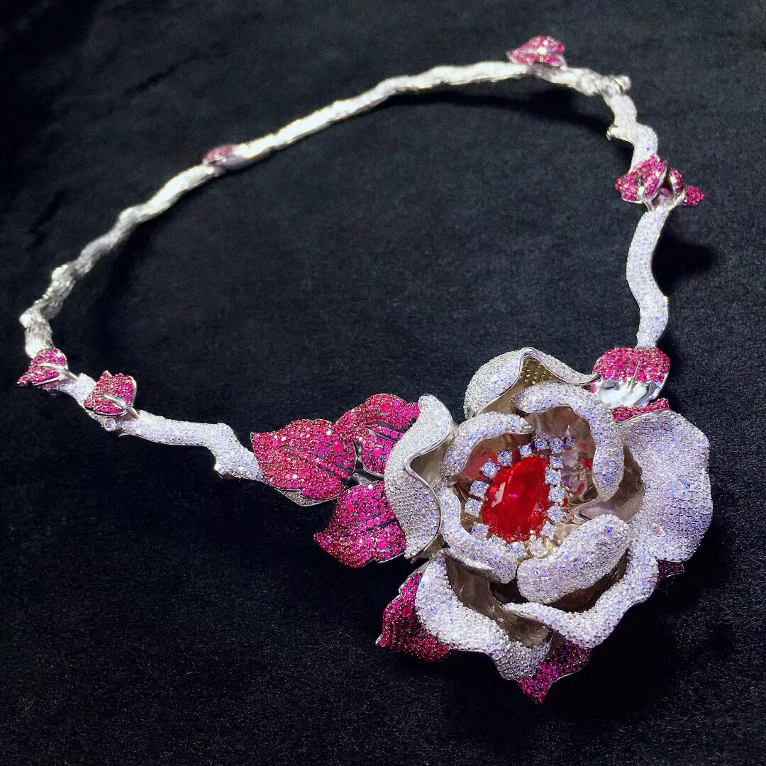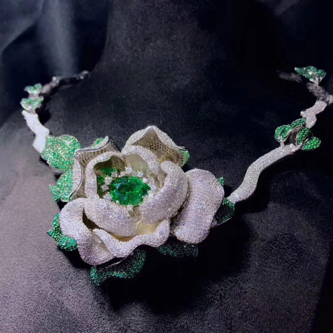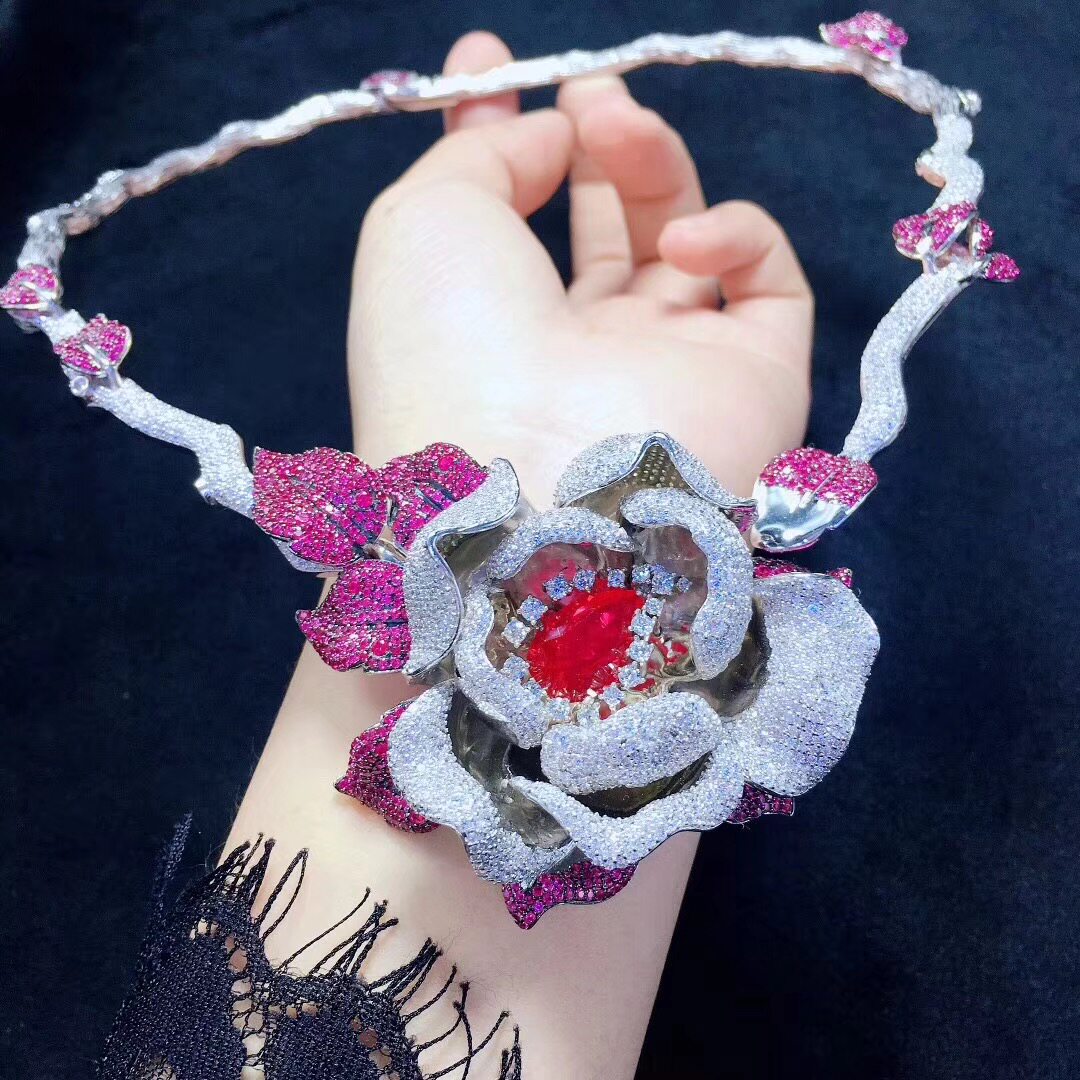 大花朵项圈项链 豪华款 925纯银 锆石 晚宴 婚礼 名媛 大气款