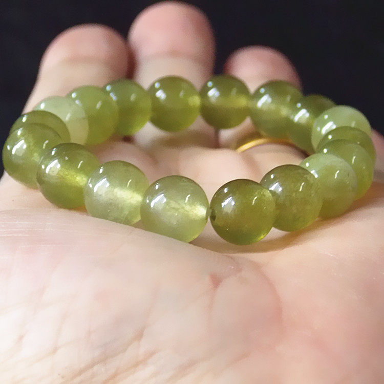 合成玉翡翠玉石手链 石英岩玉绿色10mm玉石手链龙纹水晶手串