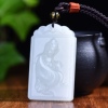 新疆和田玉羊脂玉白玉青白玉送福观世音吊坠男女士款挂件玉坠玉佩