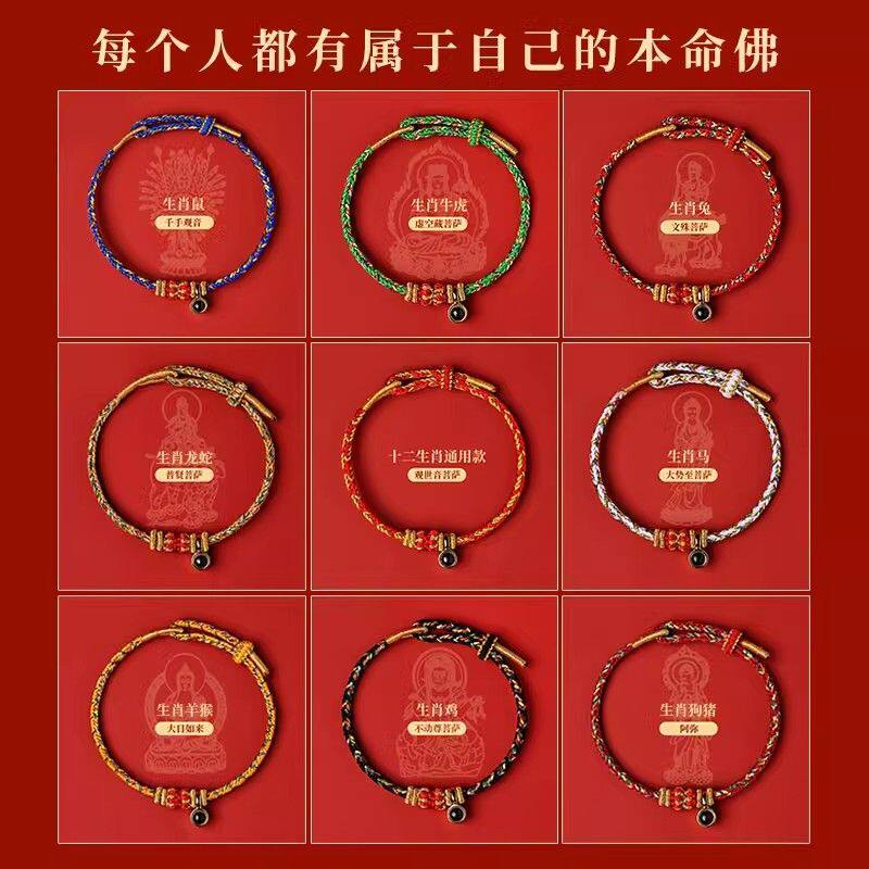 普陀山十二生肖本命年红绳手链女八大守护神转运珠男属蛇红色手绳