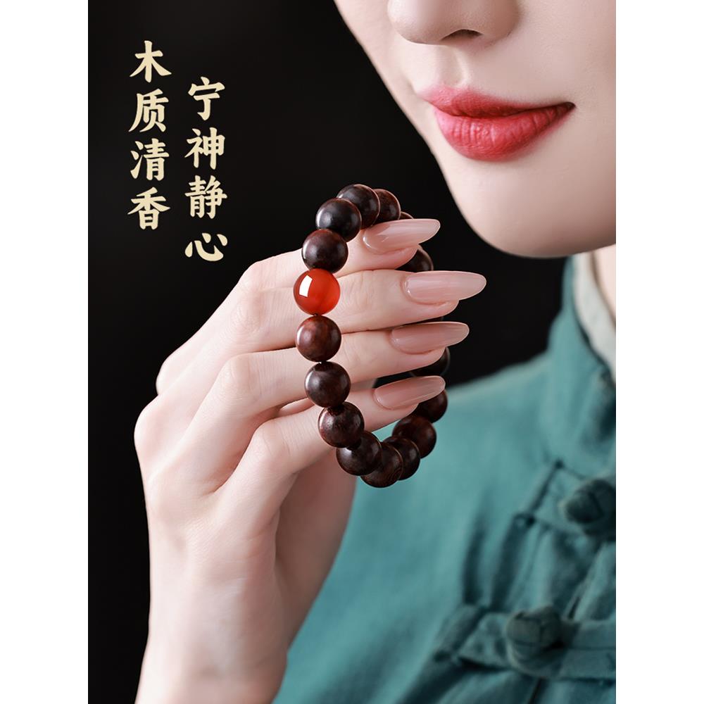 满金星小叶紫檀手串女士檀木檀香佛珠手串男款本命年红玛瑙转运珠