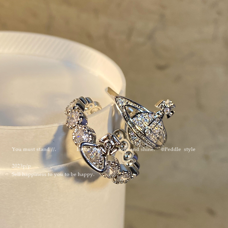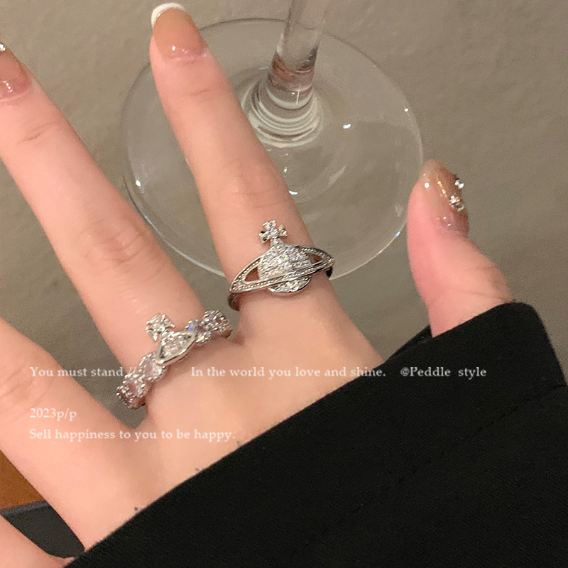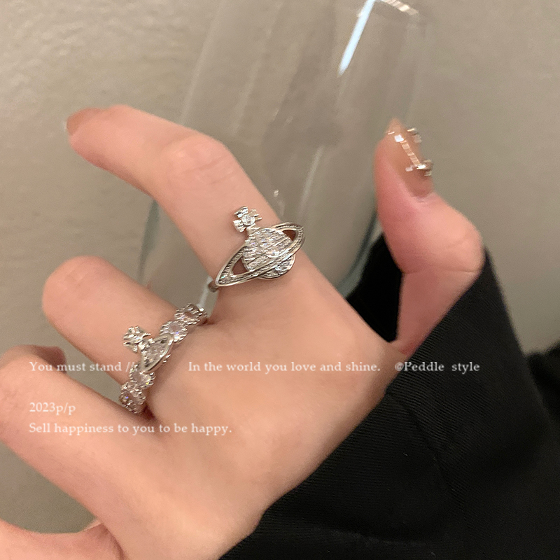 Peddle 闪钻土星戒指女小众设计高级感百搭食指戒情侣指环配饰潮