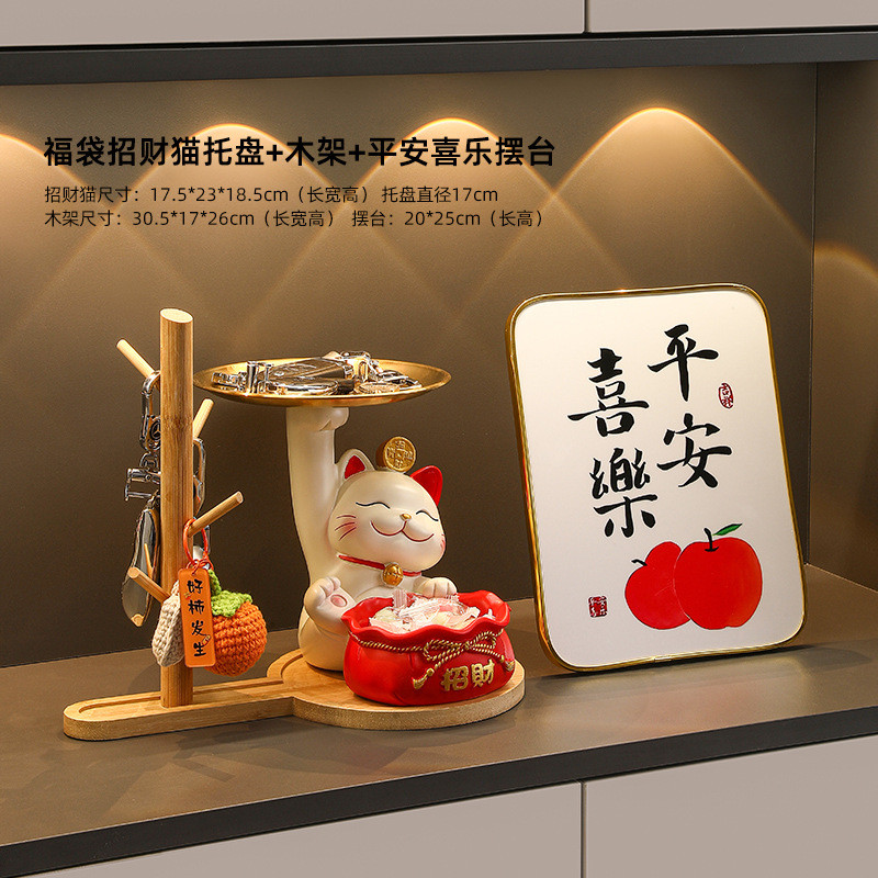 招财猫玄关钥匙收纳轻奢客厅酒柜摆件家居饰品乔迁新居入户装饰品