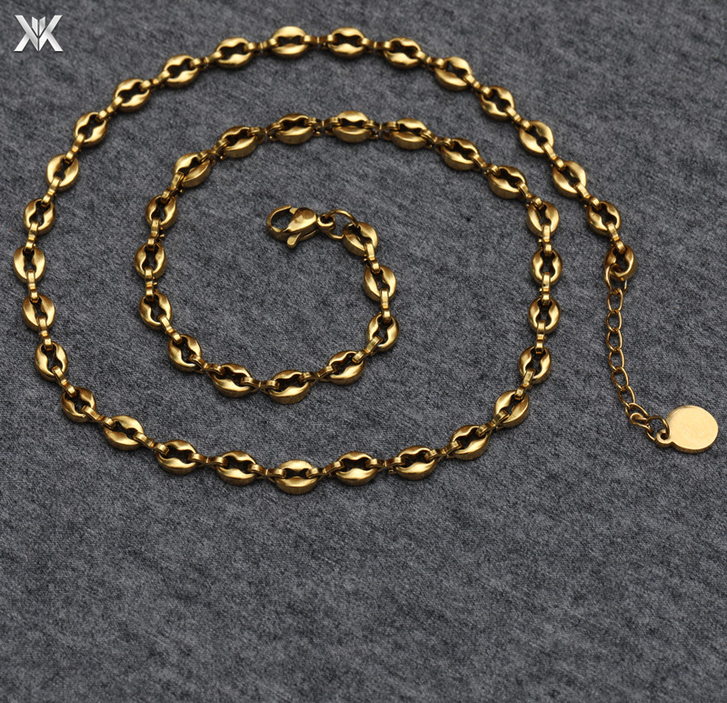 男女ins叠戴项圈18K真金加厚电镀猪鼻子项链情侣短款咖啡豆锁骨链