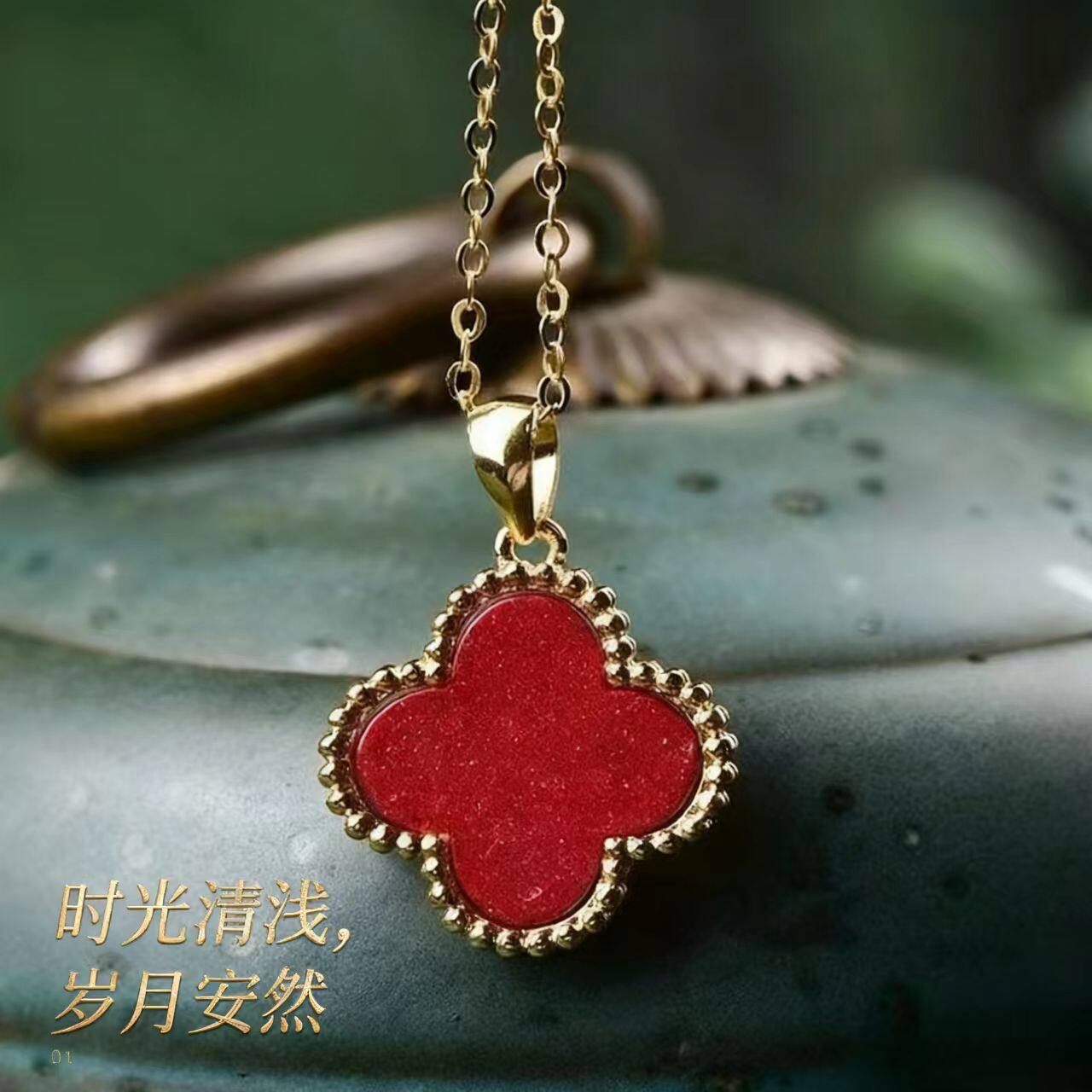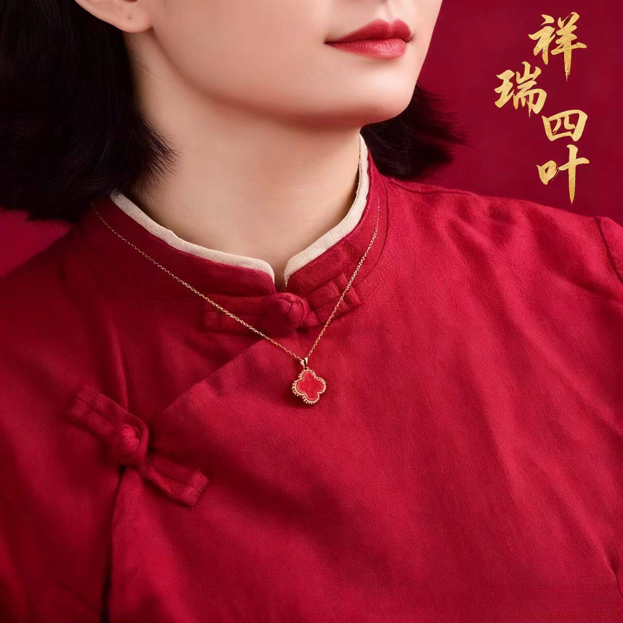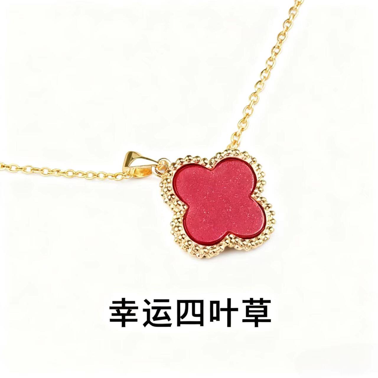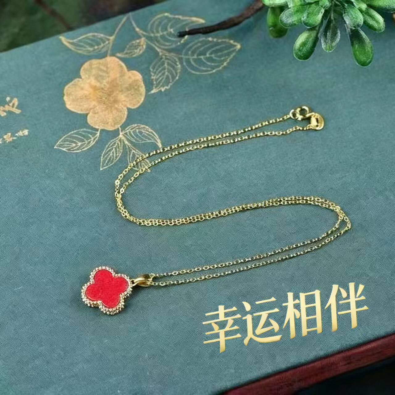 四叶草朱砂高奢感小众设计高级感招财转运保平安幸运草吊坠红色