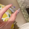真金电镀保色高级浪漫紫色水滴爱心排钻戒指叠戴设计精致指环
