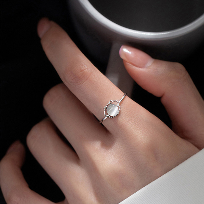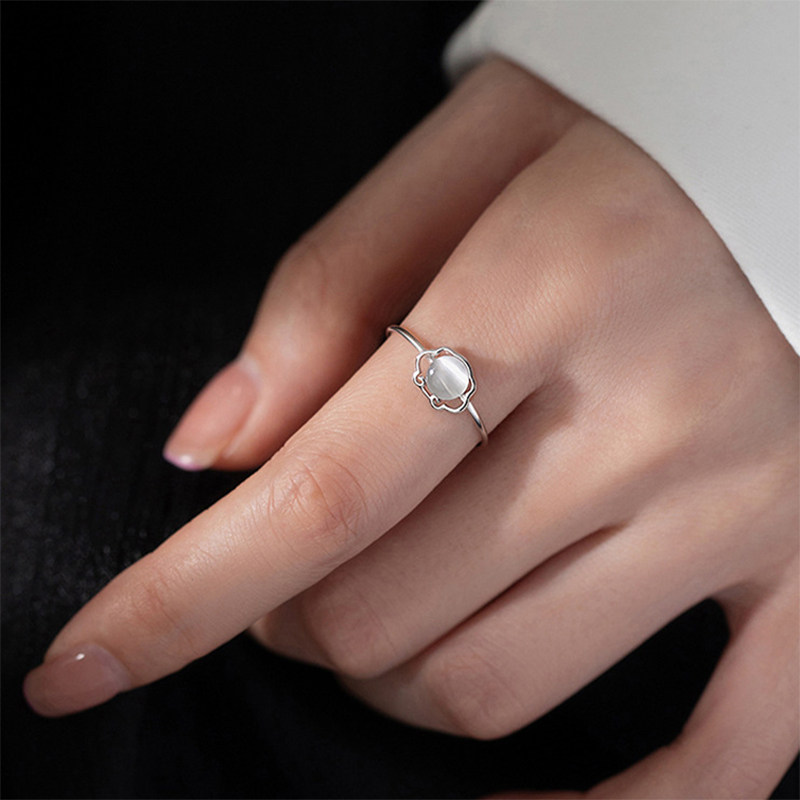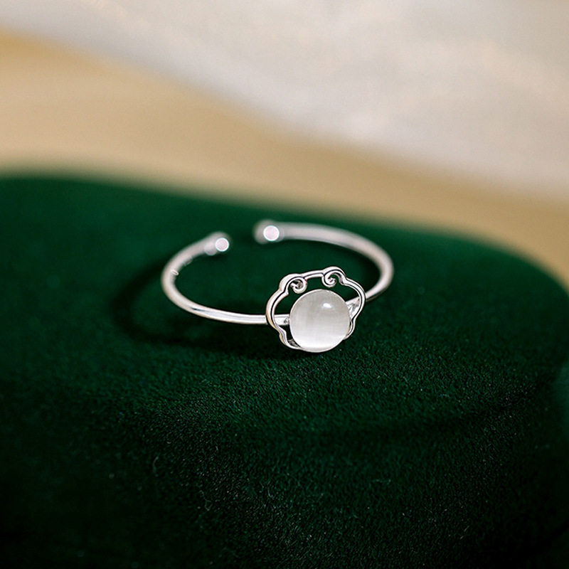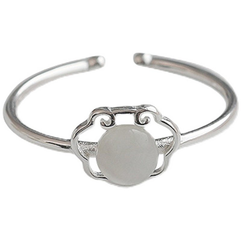 s925纯银祥云如意平安锁戒指女小众设计高级冷淡风复古开口戒素圈