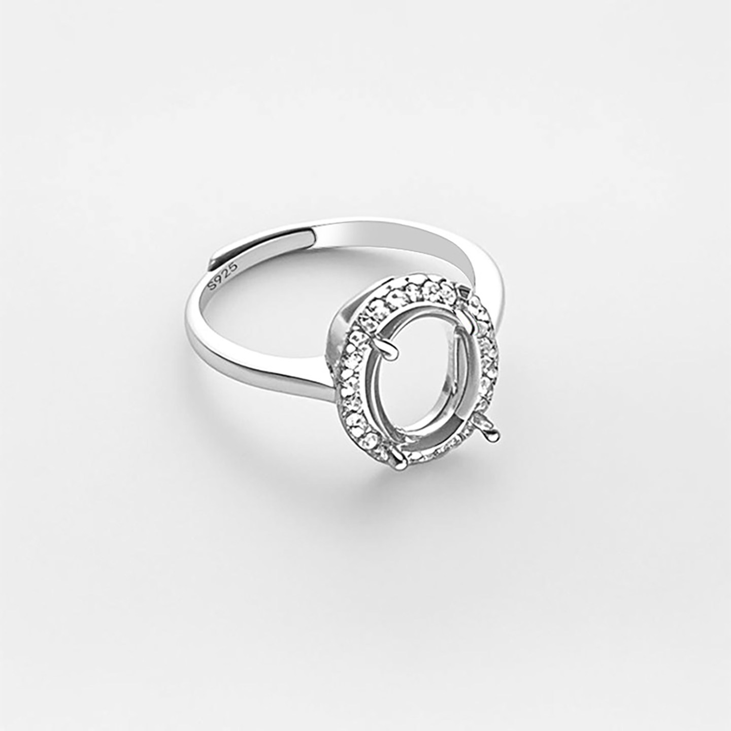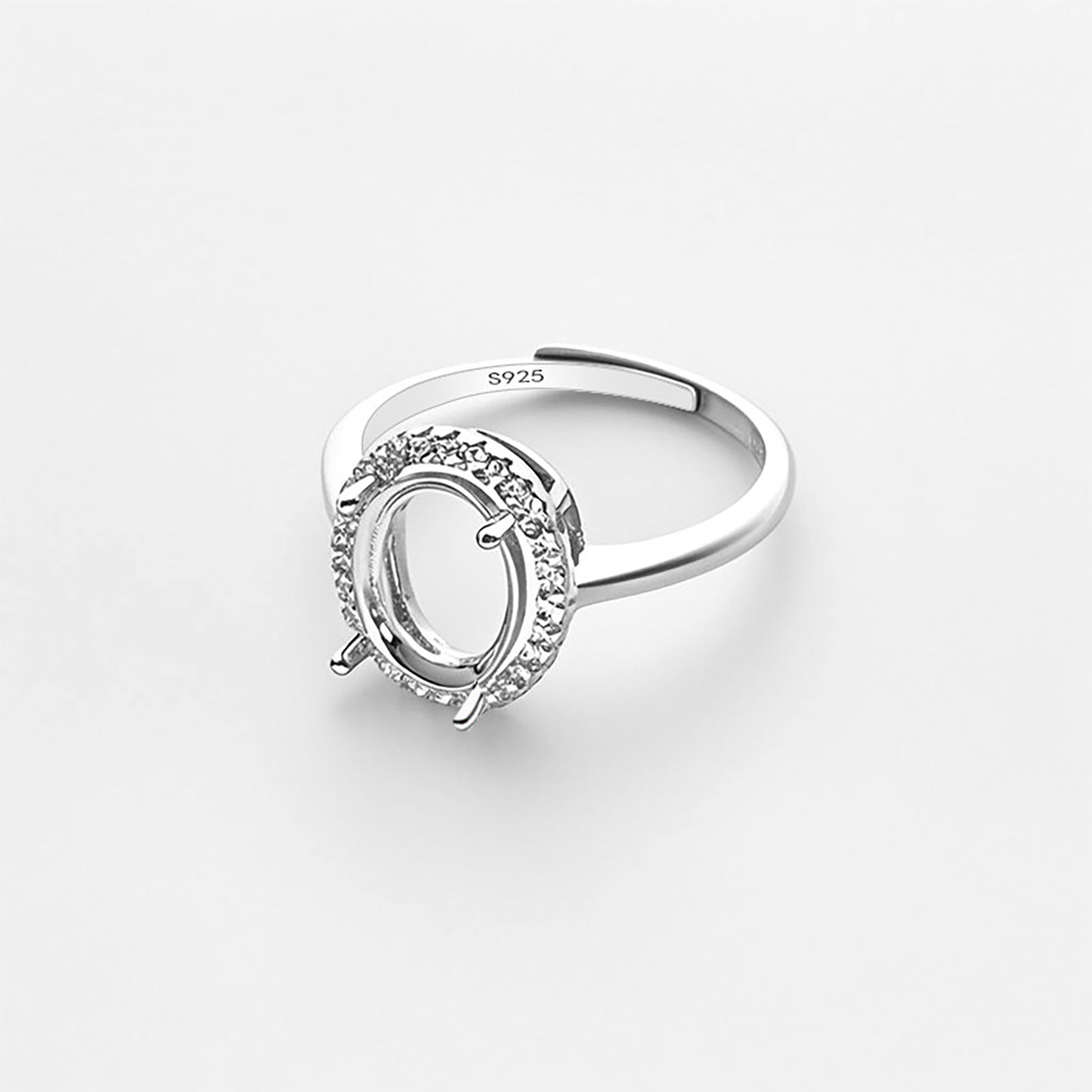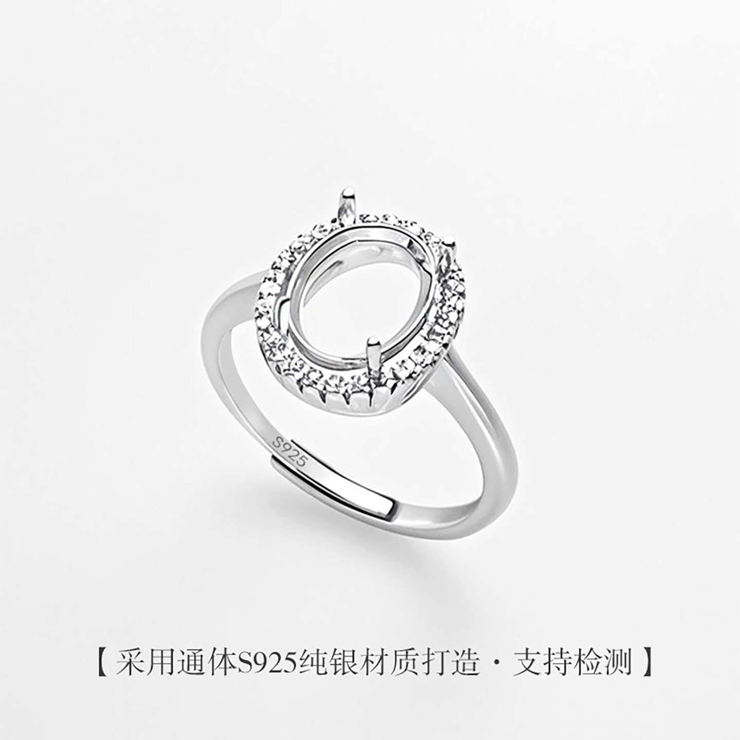 全新S925纯银戒指空托小众设计活口女款镶嵌翡翠椭圆蛋形戒托8*10