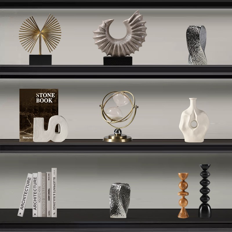 高级感小众轻奢风酒柜客厅样板房软装组合工艺品摆件装饰品摆件
