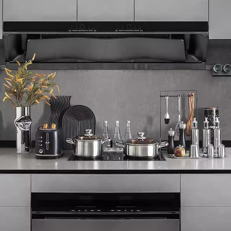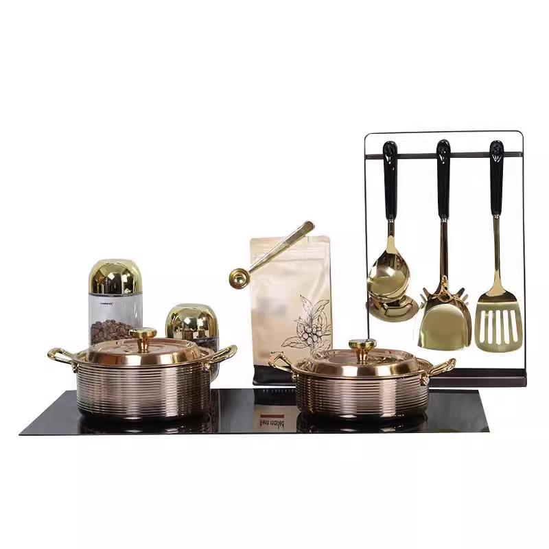 样板房间厨房摆件组合轻奢高级感不锈钢锅具整体橱柜桌面家居软装
