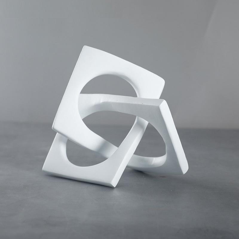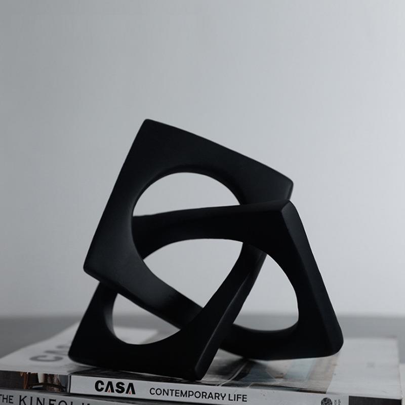 现代简约树脂黑色白色几何摆件样板售楼处客厅书房办公桌创意饰品