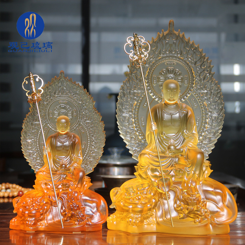 古法琉璃地藏王菩萨摆件桌面摆放背板地藏佛像佛具用品谛听地藏
