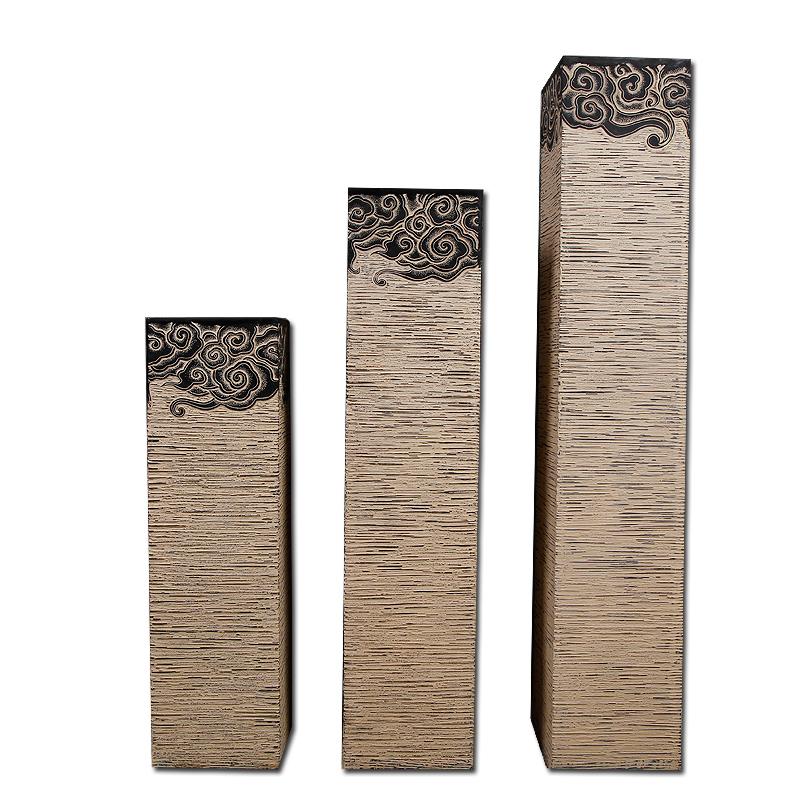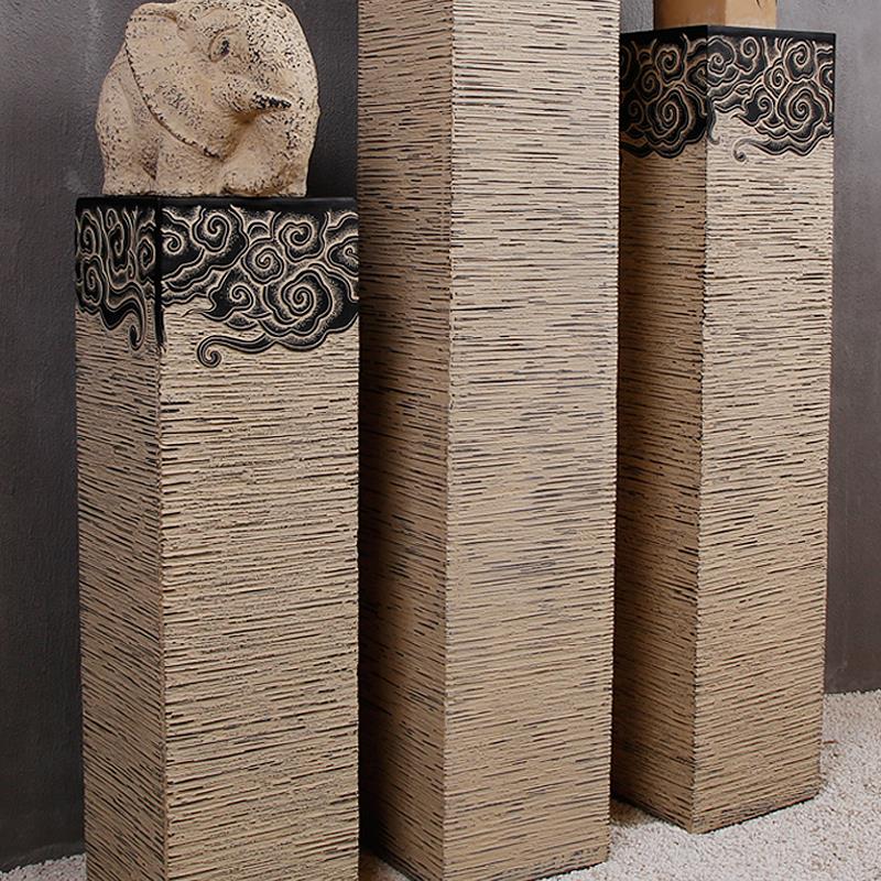 新中式祥云展示柱彷古石墩落地摆件客厅过道玄关饰品底座金色柱子