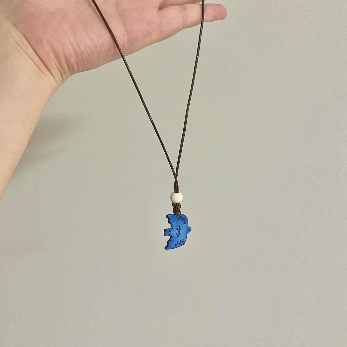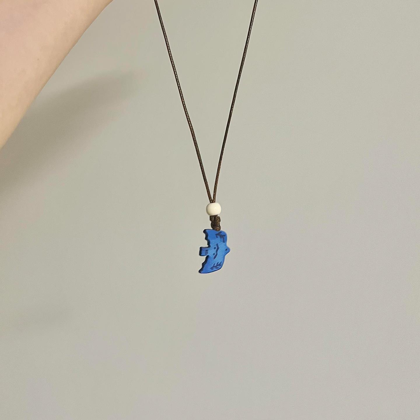 新中式蓝色石塑小鸟串珠编绳项链简约百搭复古小众独特设计毛衣链