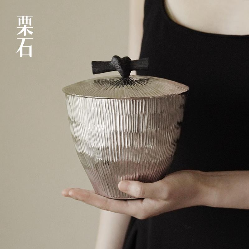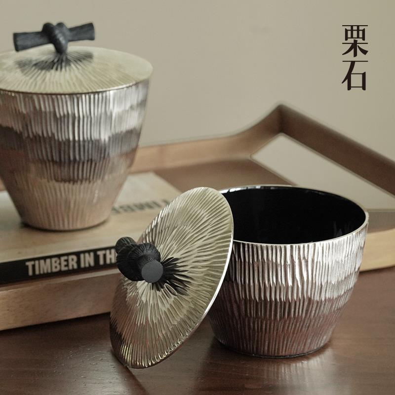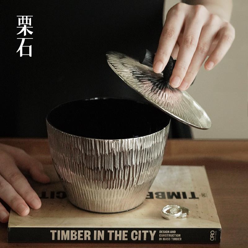 栗石印度进口银色线条收纳罐摆件现代轻奢铝制带盖收纳盒装饰罐子