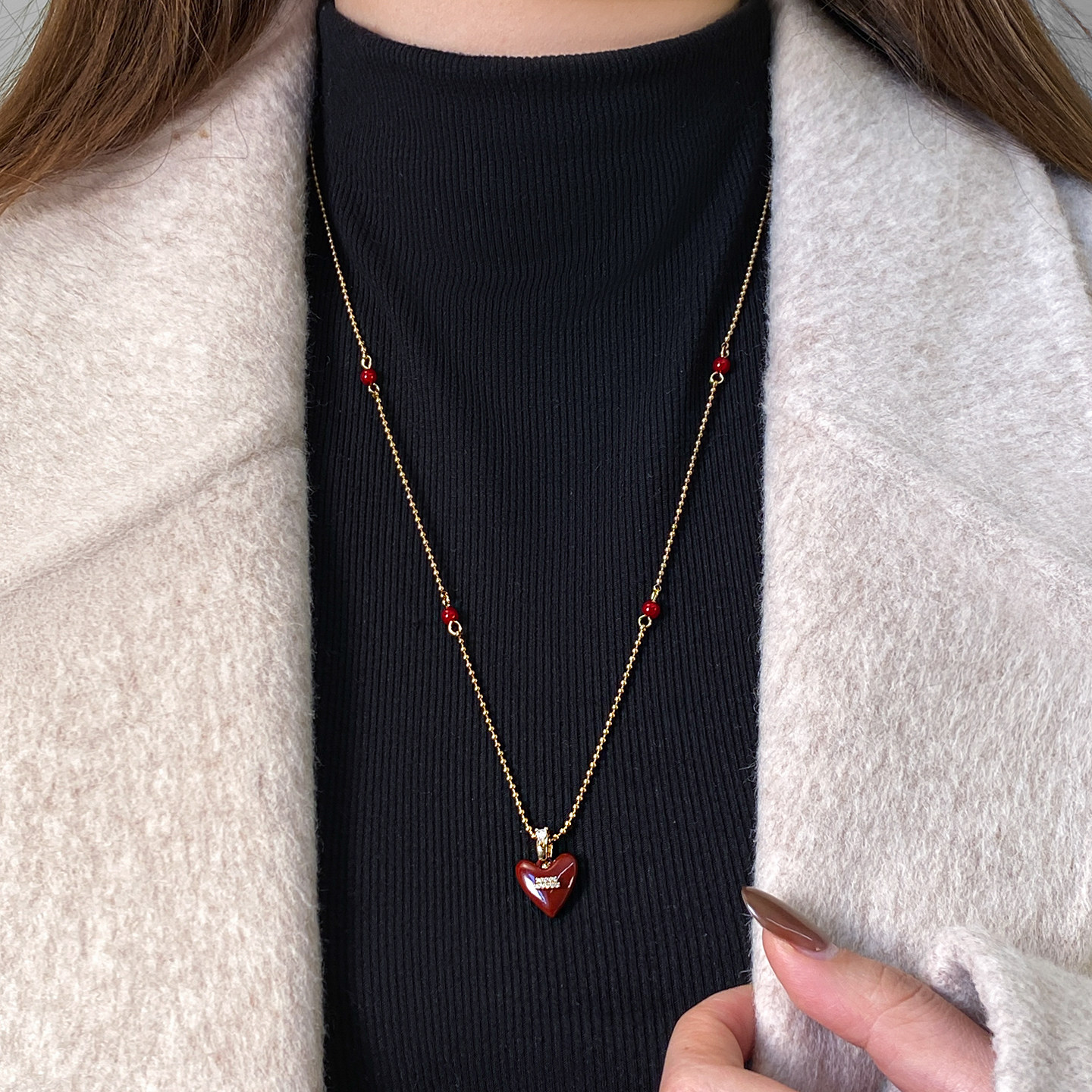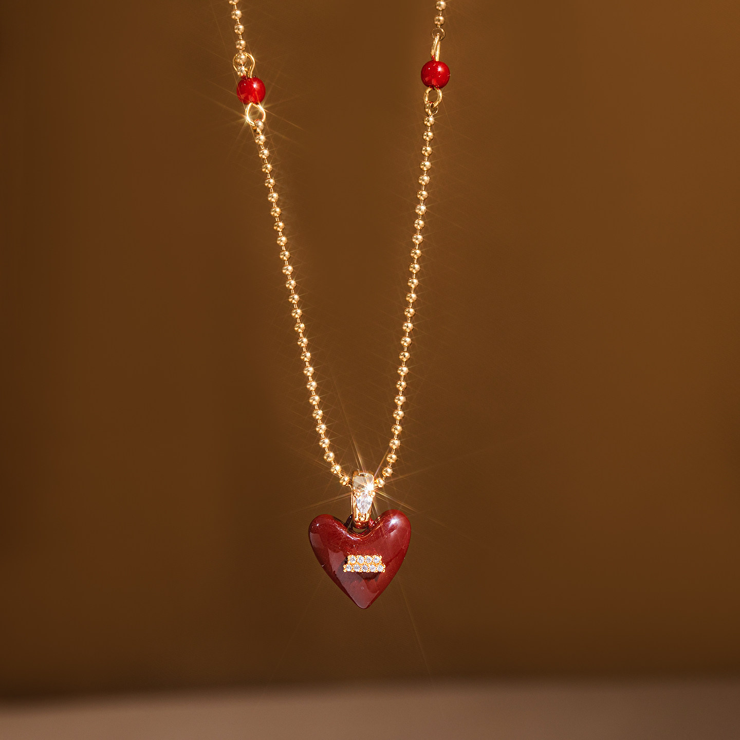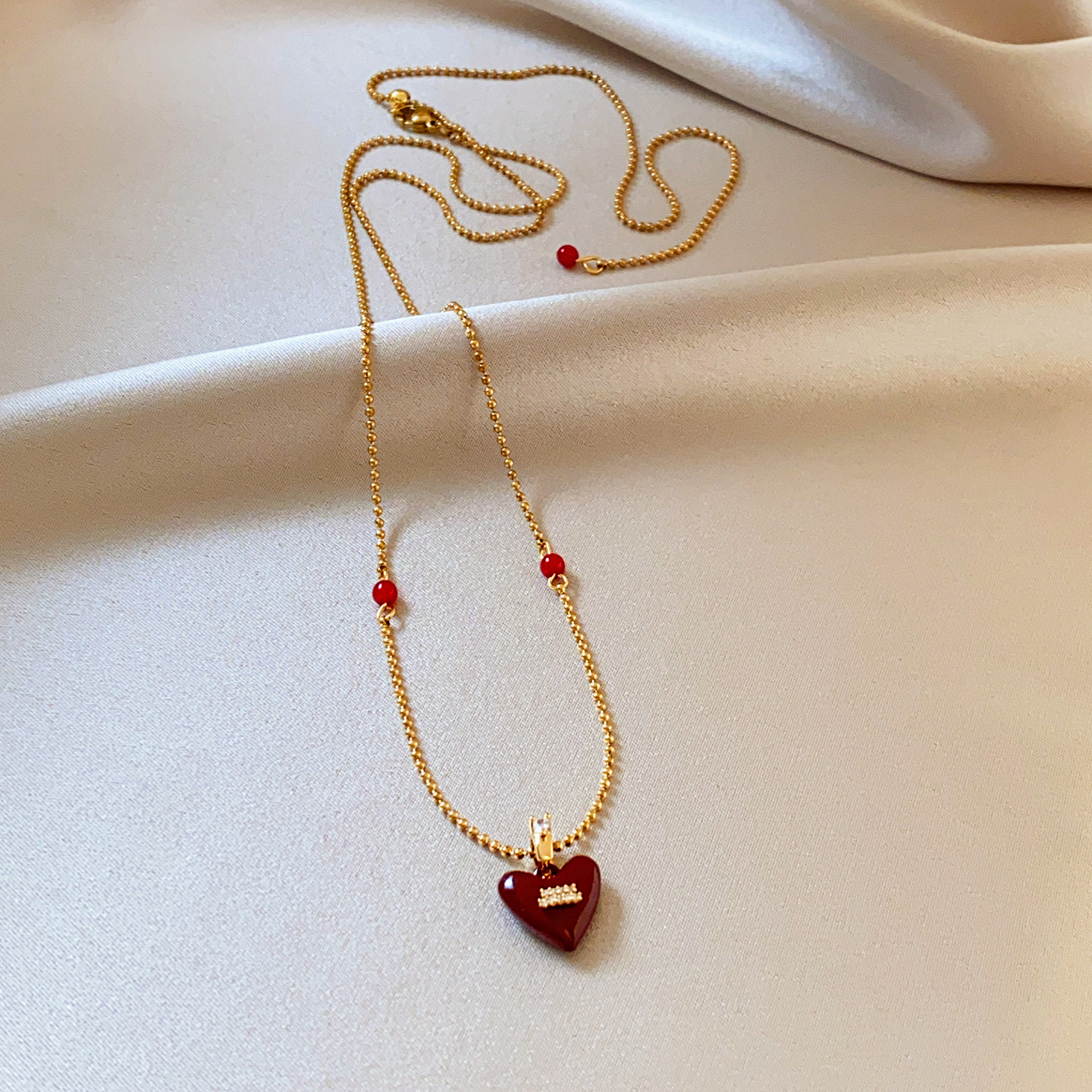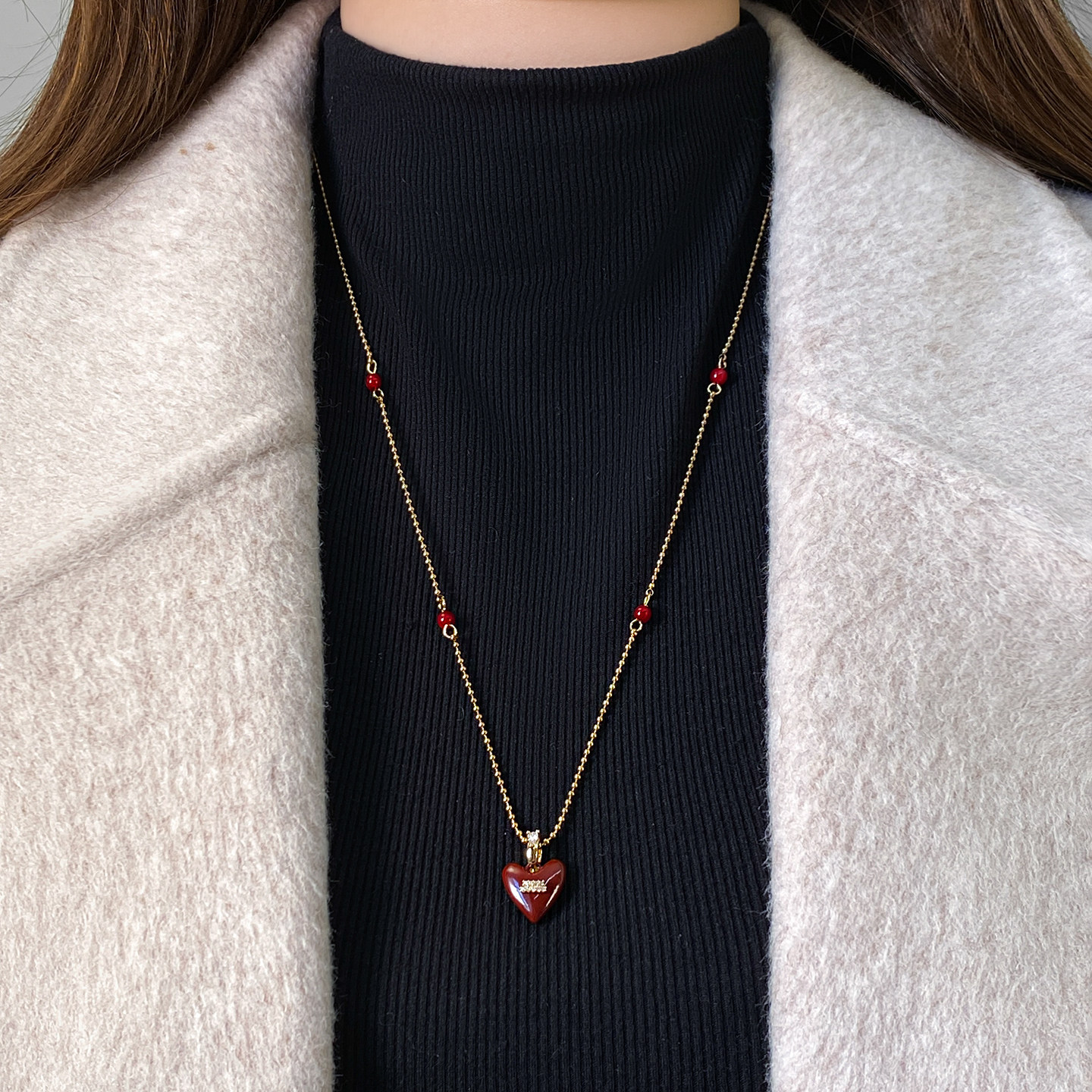红色微镶爱心吊坠项链2026新款毛衣链大气高档高级感轻奢小众配饰