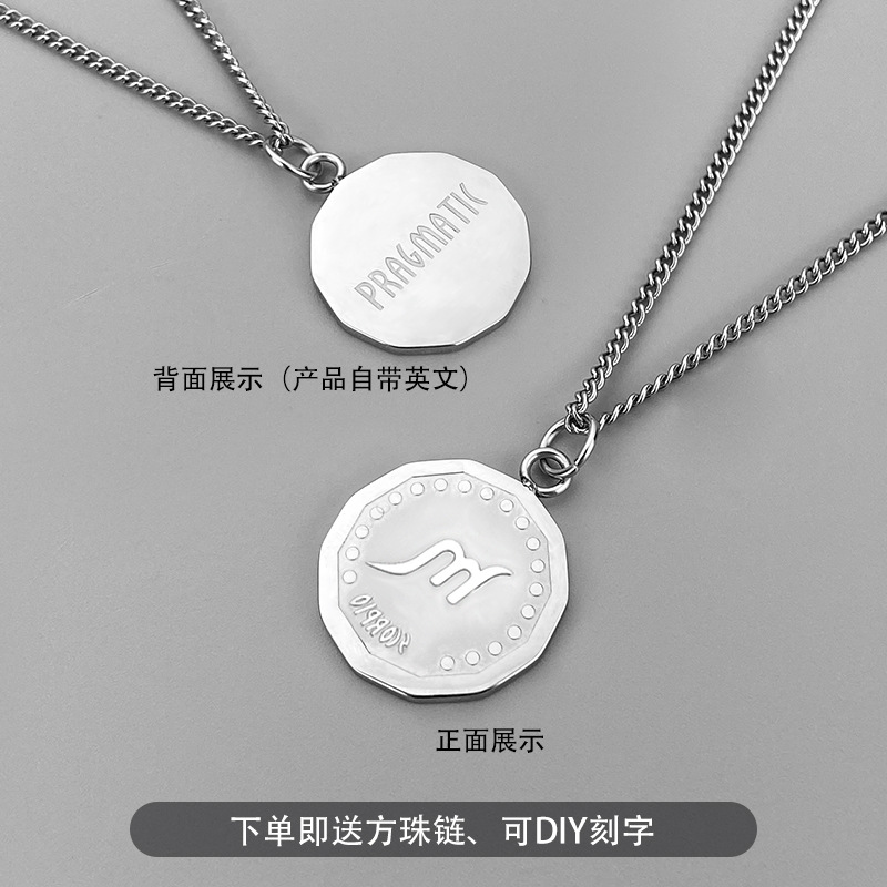 十二星座项链男嘻哈个性潮流圆牌星座吊坠小众设计感个性女饰品