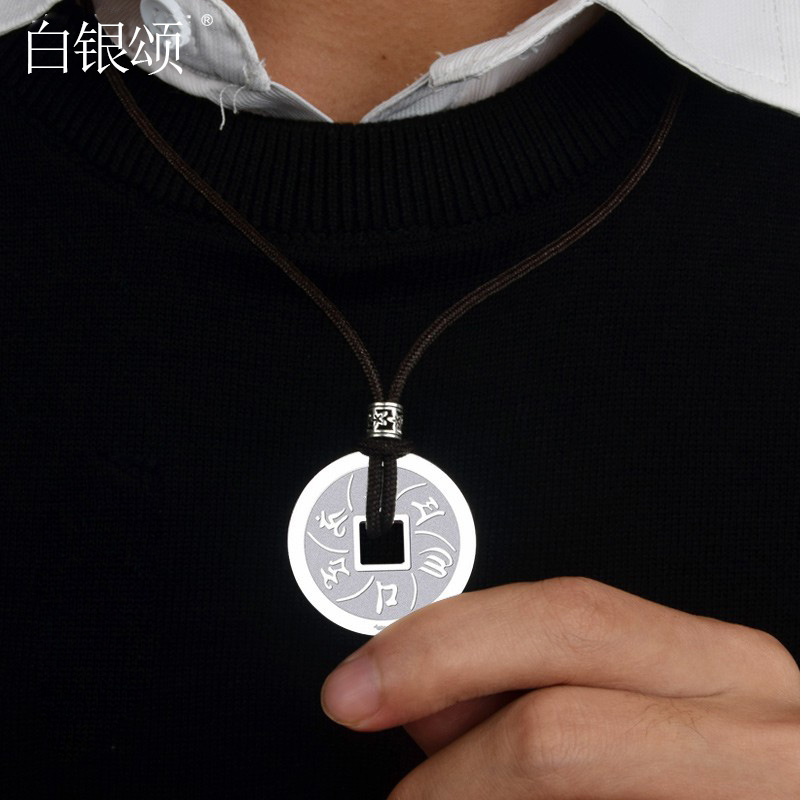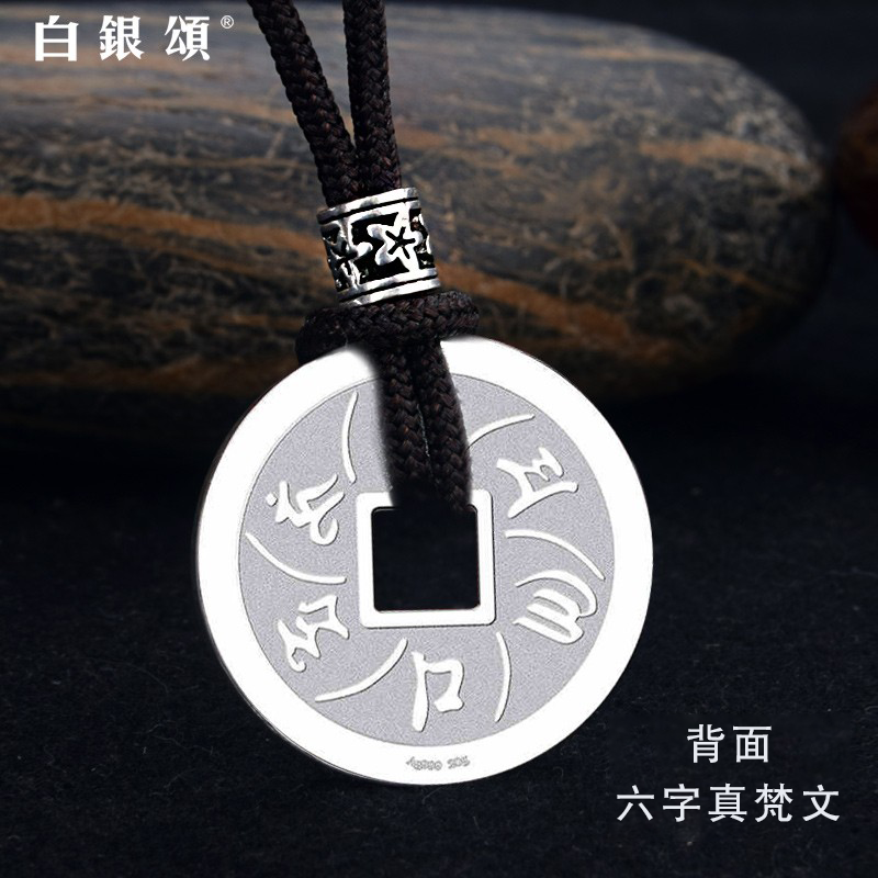 白银颂999足银六字真言大明咒银钱吊坠情侣项链银饰品个性礼品