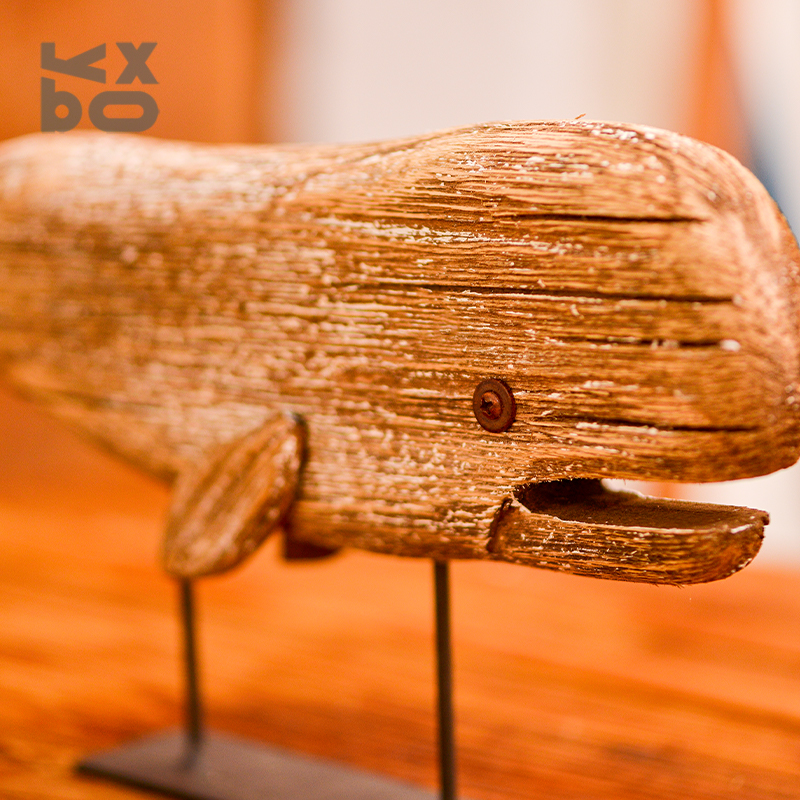 YBOX美式复古实木站立鱼摆件纯手工鱼摆设年年有余工艺品原木做旧