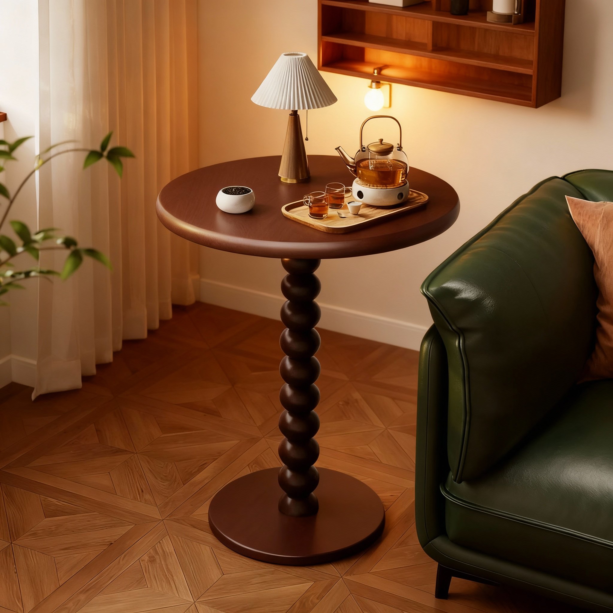 美式复古实木客厅小圆桌沙发角几几何造型收纳储物桌面摆件