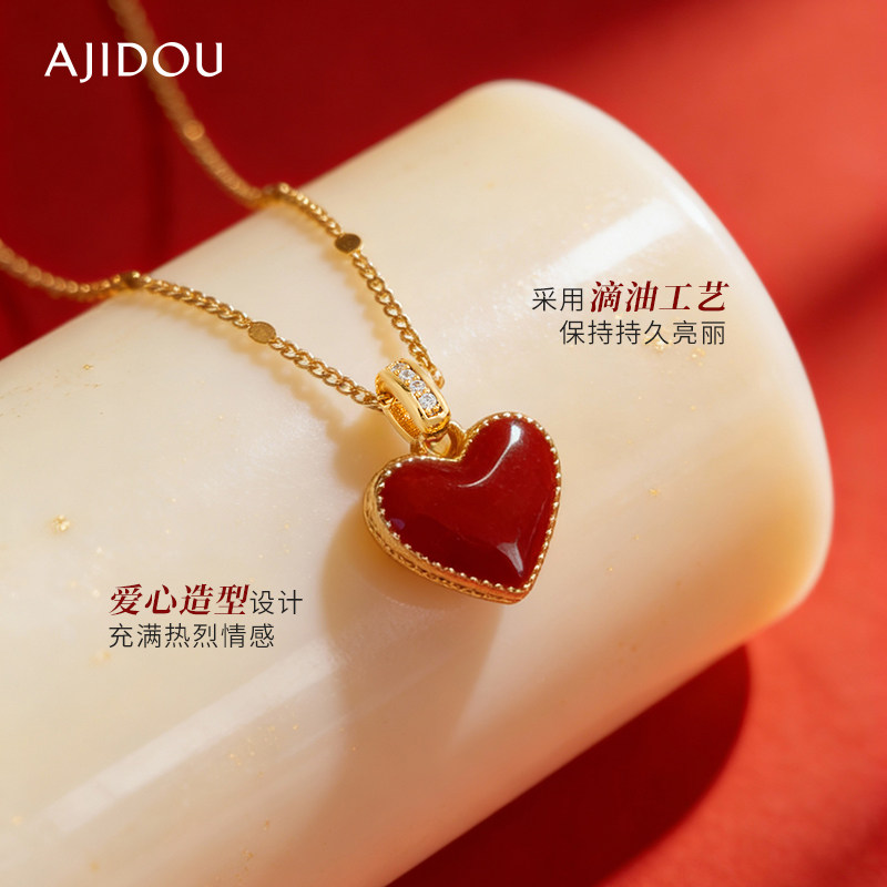 AJIDOU阿吉豆项链女新年红色爱心项链轻奢毛衣链配饰品小众锁骨链