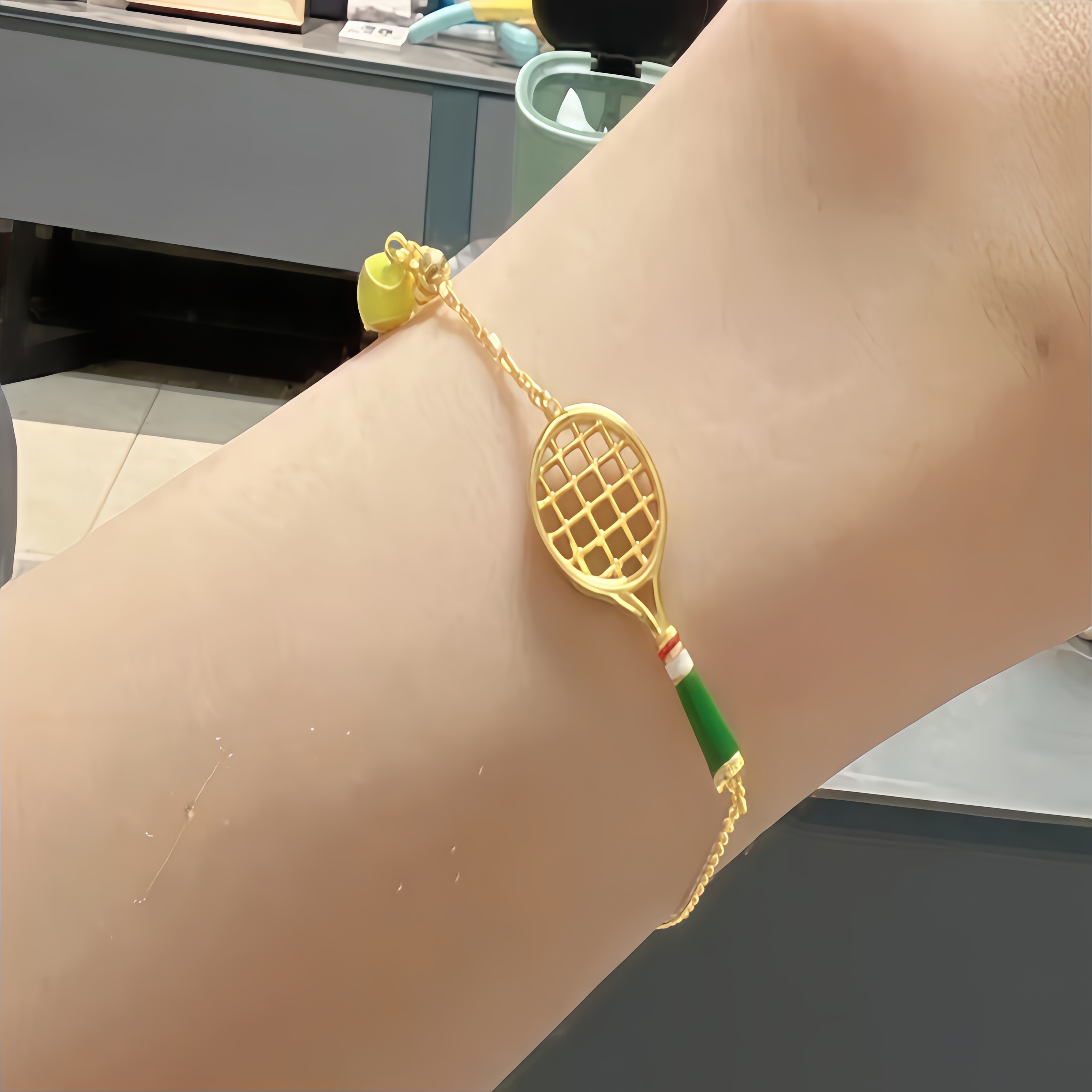 网球拍项链手链钛钢镀18K金轻奢小众精致情侣礼物时尚运动风饰品