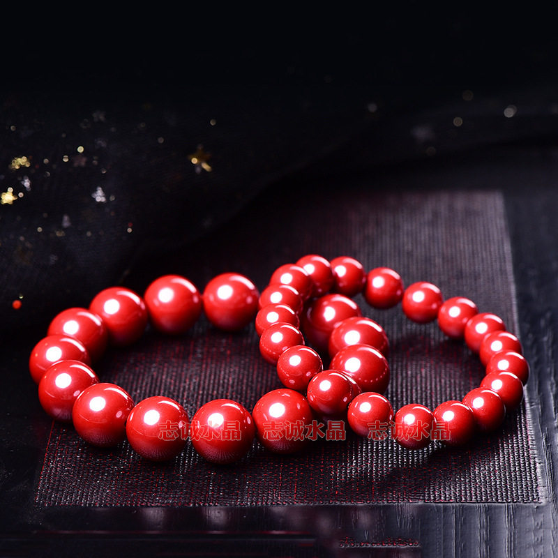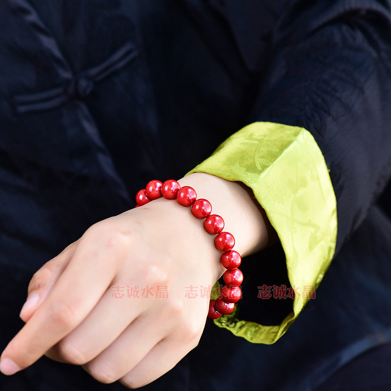 天然高低含量帝王砂圆珠单圈手链男女士款红色朱砂手串辰砂6-16mm